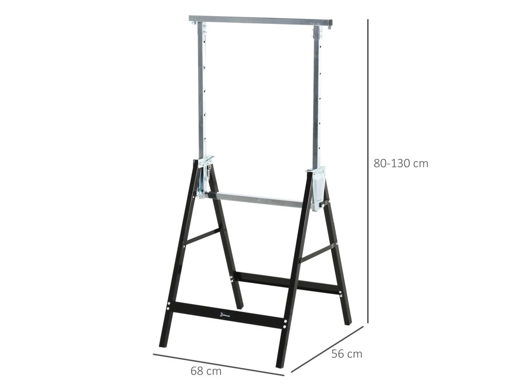 DURHAND pilový kůň, pracovní kůň, výškově nastavitelný, skládací, kovový, černý, 68 x 56 x 80-130 cm, nosnost 200 kg