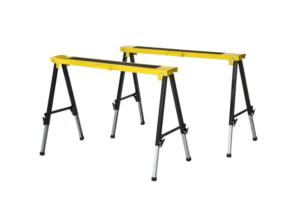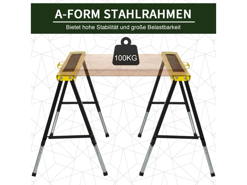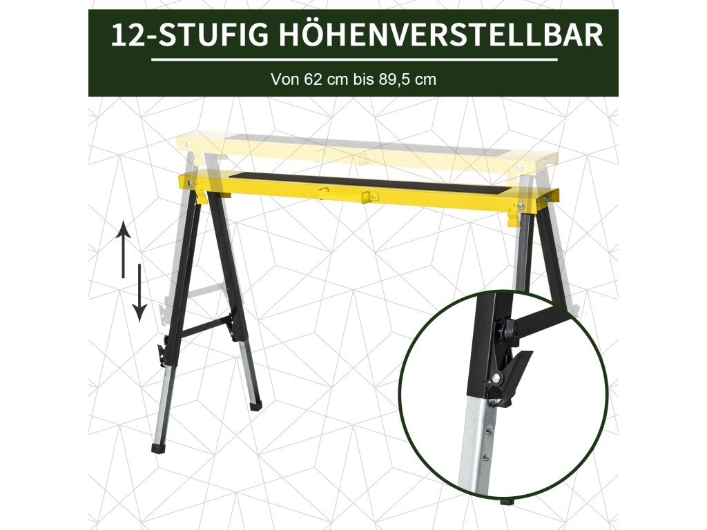 DURHAND sada 2 pilových rámů pracovní kozlík skládací protiskluzový ocelový žlutý černý 100 x 49 x 62-90 cm nosnost 100 kg