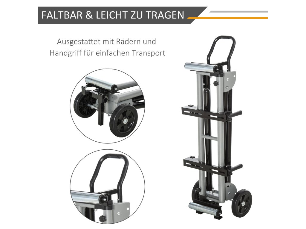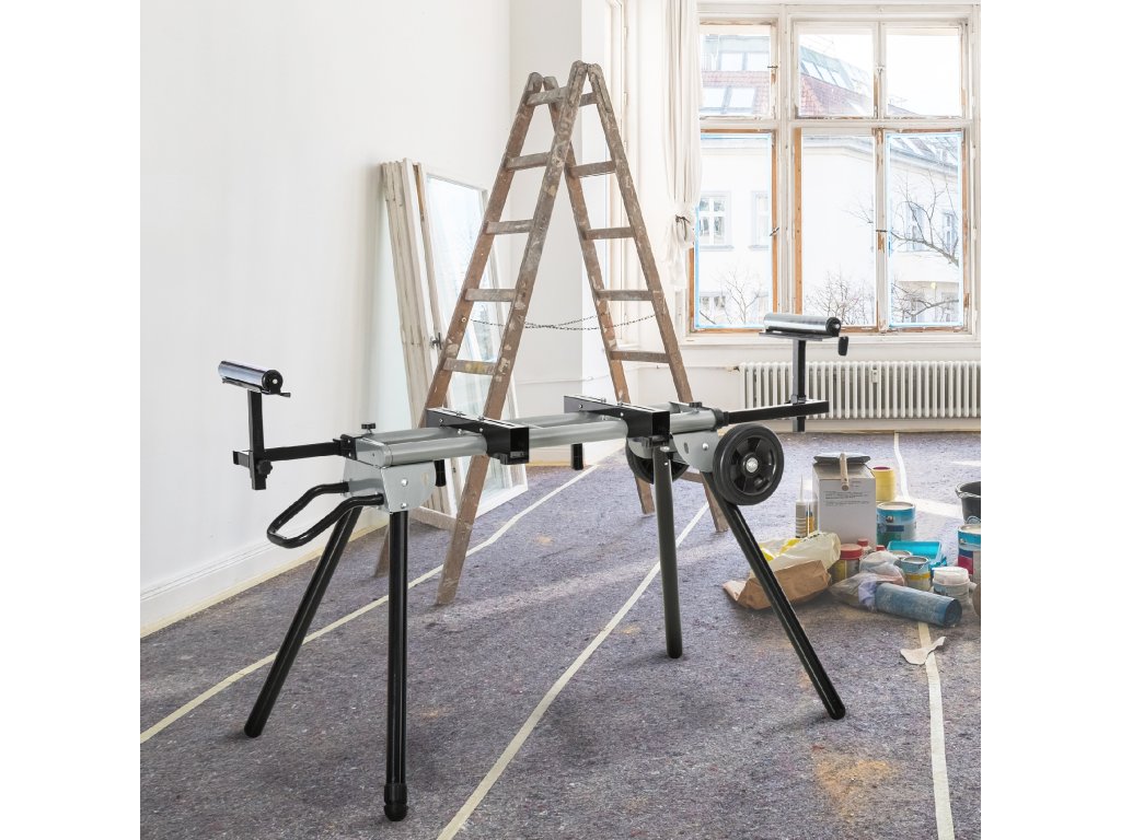 - Skládací a snadno přenosný: Tento stojan na pokosovou pilu lze složit, když se nepoužívá. Ujistěte se však, že jste vysunuli spodní základnu s kolečky o 4 cm, aby při skládání nespadl. Pracovní stojan s kolečky a rukojetí se snadno přepravuje.