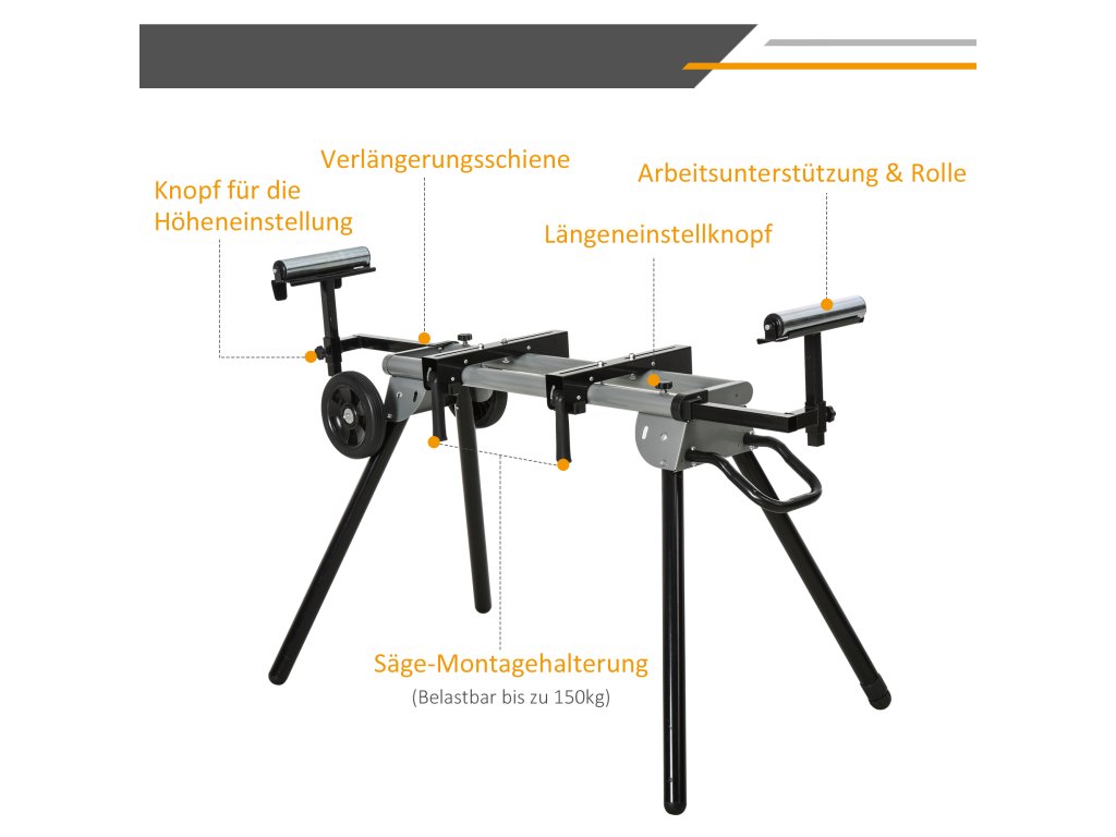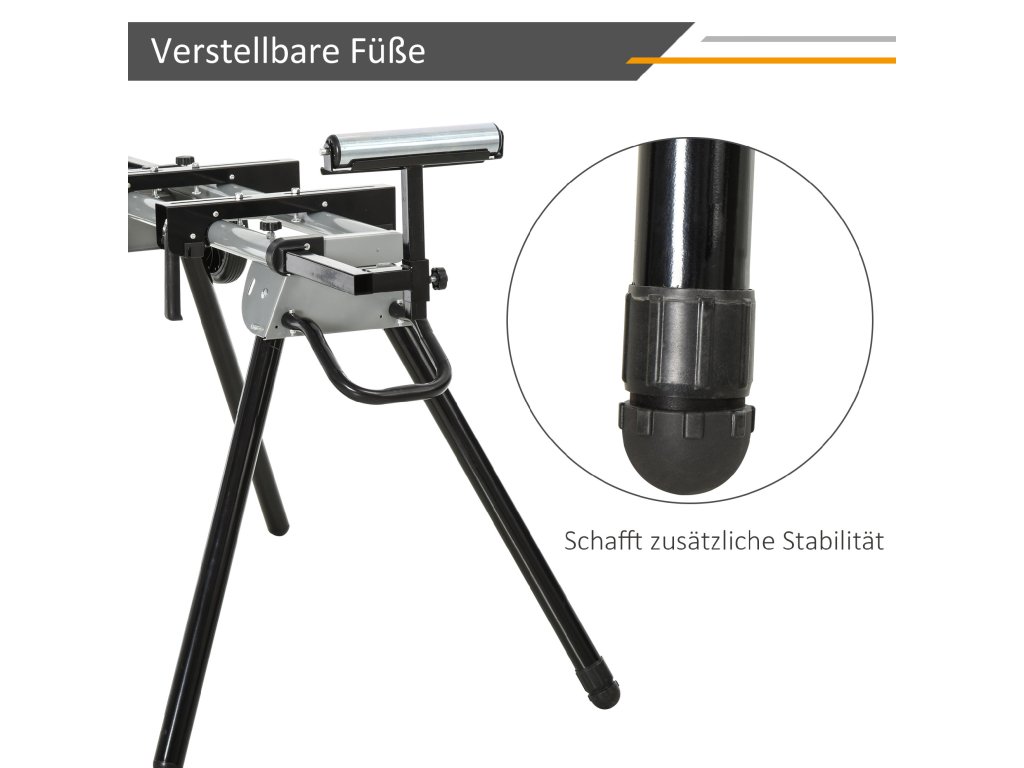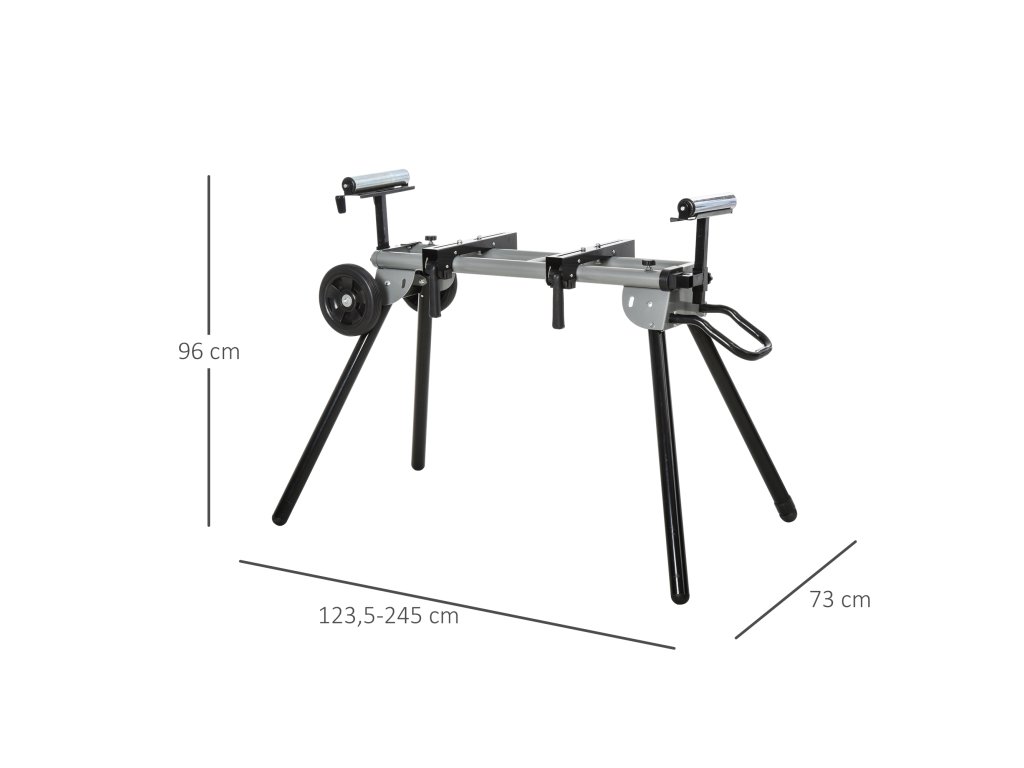 DURHAND Spodní rám pro křížové pily Pracovní stůl pro křížové a pokosové pily Rám pily pro křížové pily ocel Černá+stříbrná Boční prodloužení 123,5-245 cm