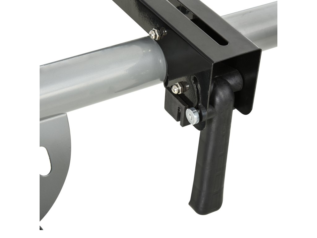 - Snadná montáž: Díky dvěma rychloupínacím držákům lze pokosovou pilu snadno namontovat a sejmout ze stojanu. Pracovní vzdálenost pokosové pily se pohybuje od 5,5 cm do 36 cm.