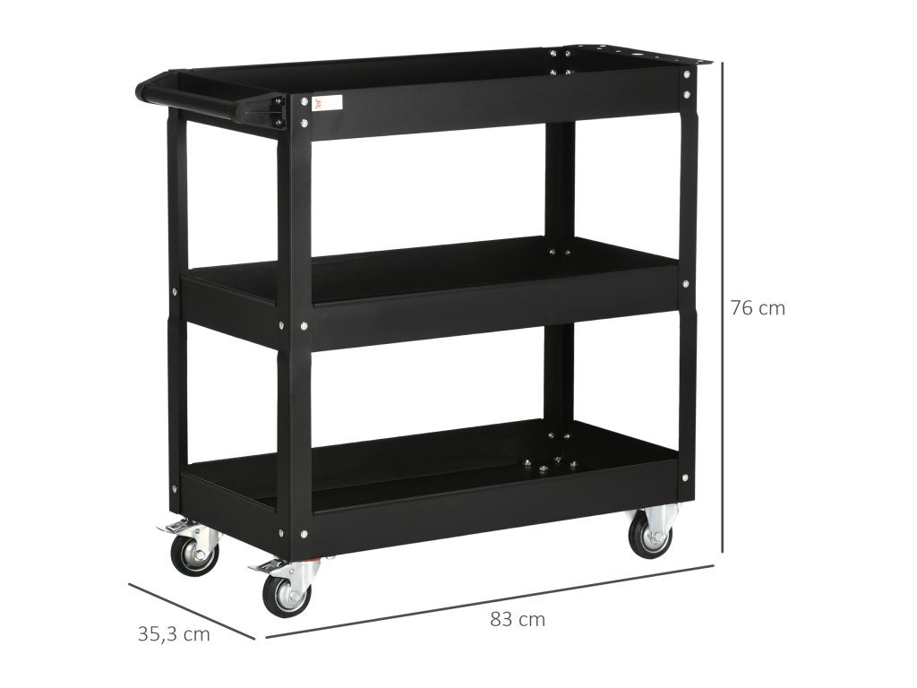 DURHAND třípatrový vozík na nářadí, 4 kolečka, ocel, 83 x 35,3D x 76V cm, černý