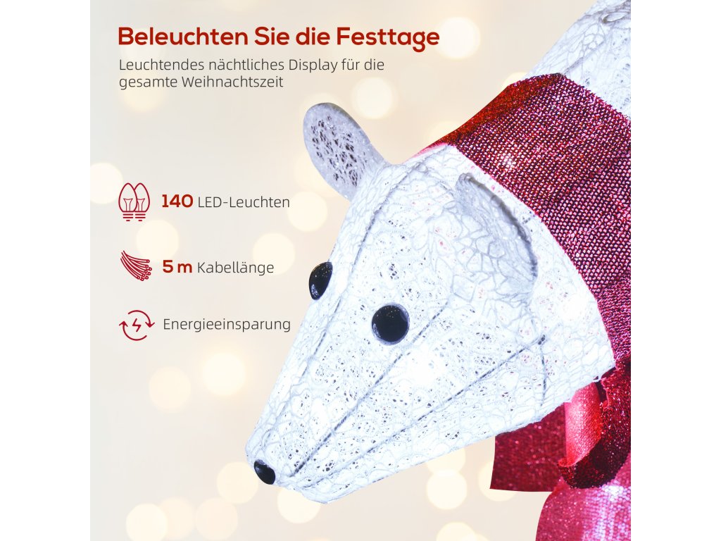 Dvoudílná vánoční dekorace Outsunny s ledním medvědem, 140 bílých LED diod, vodotěsná, s časovačem, pro vnitřní i venkovní použití.