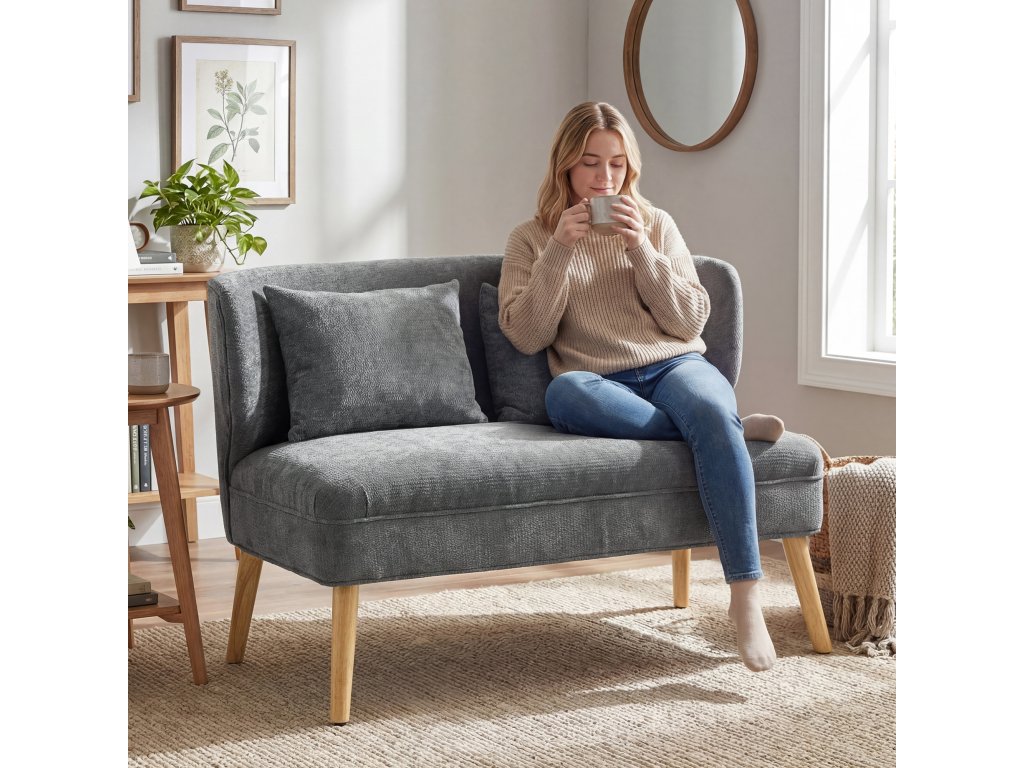 Kompaktní pro malé prostory: S šířkou pouhých 117 cm je tato kompaktní dvoumístná pohovka ideálním řešením pro malé byty, ložnice, studia nebo útulné koutky, které efektivně maximalizují dostupný prostor.