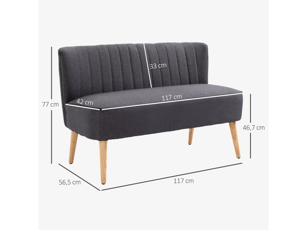 Dvoumístná pohovka HOMCOM, měkké čalounění, snadno udržovatelný potah, nosnost do 220 kg, 117 x 56,5 x 77 cm, tmavě šedá