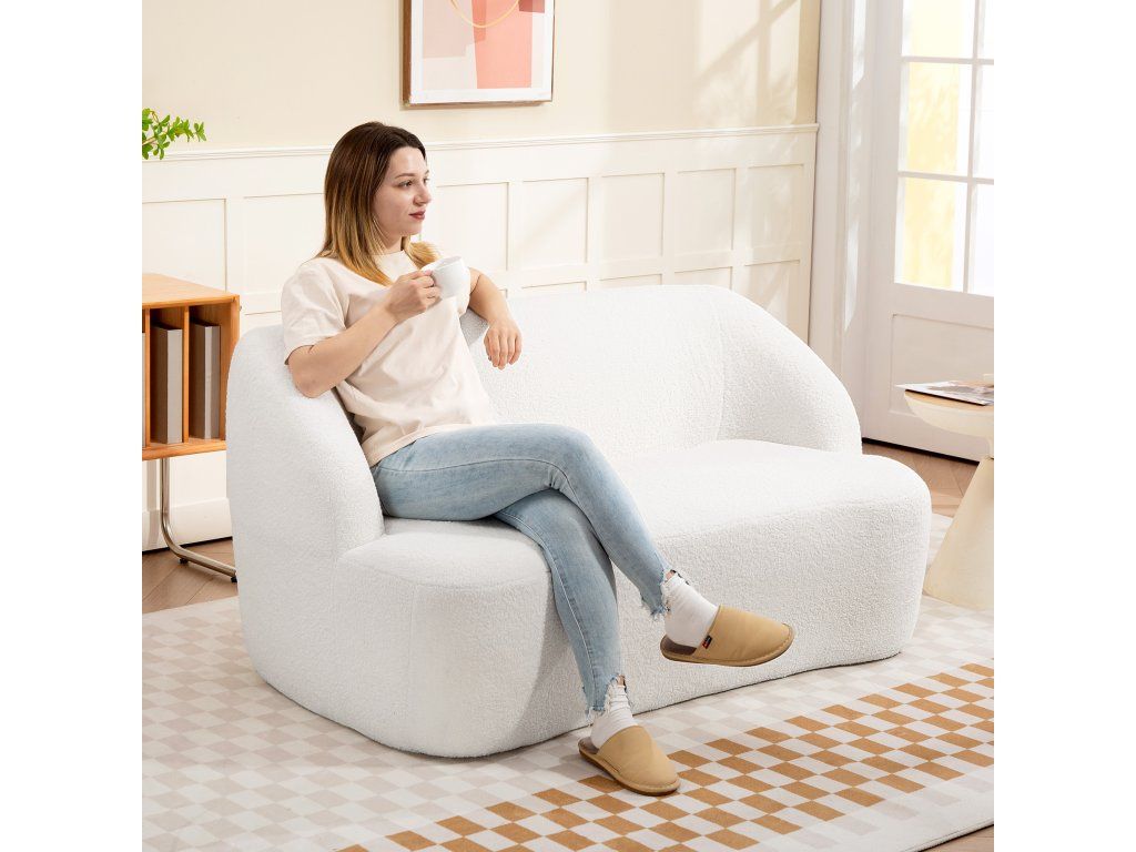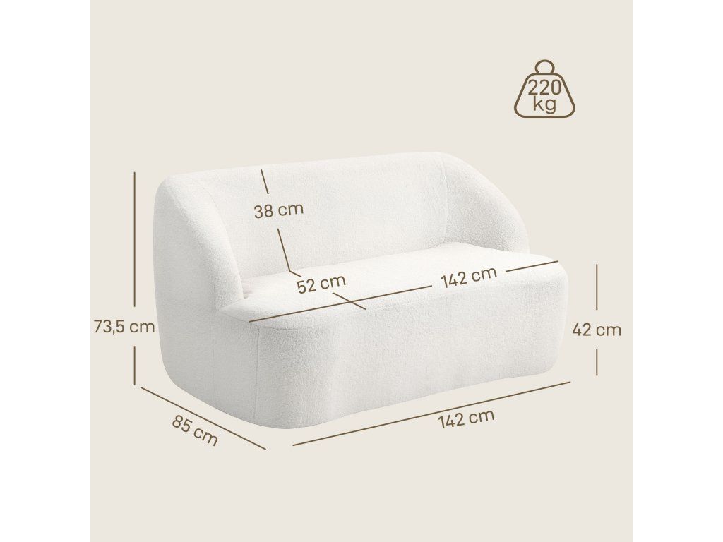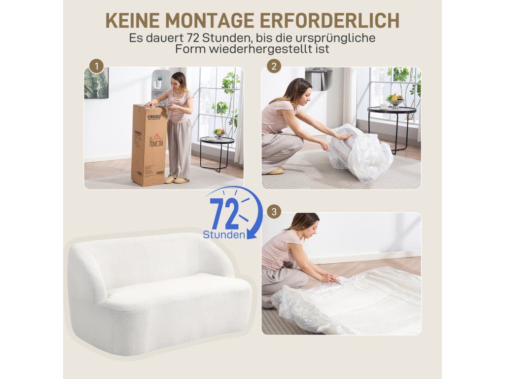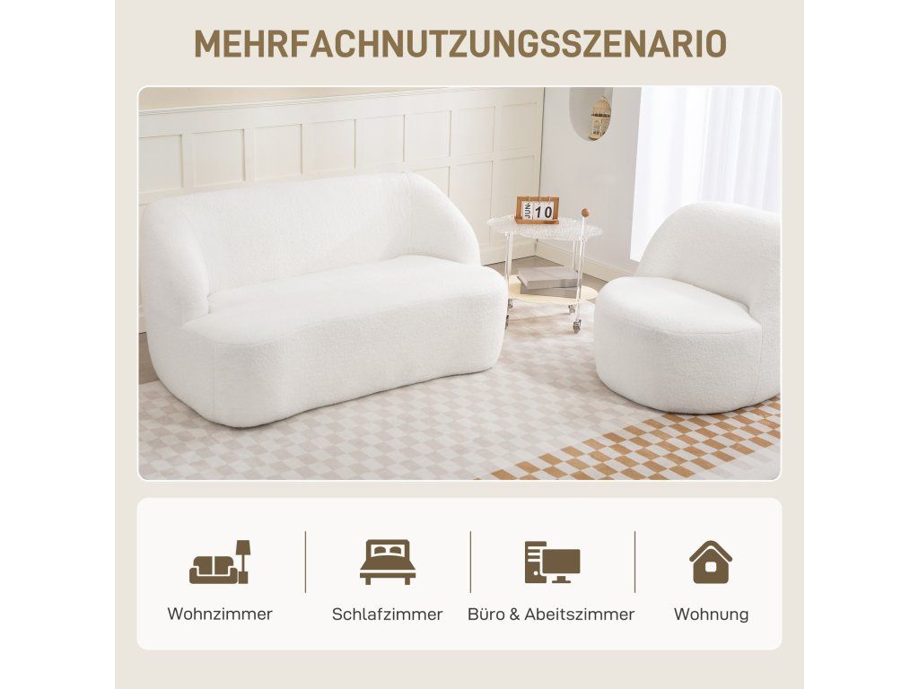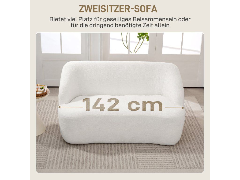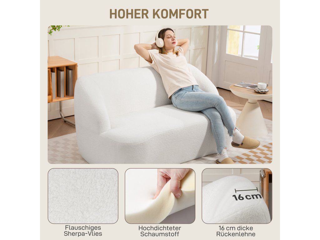 Dvoumístná pohovka HOMCOM, prohnutý design, čalouněná pohovka s fleecovým potahem, do obývacího pokoje, ložnice, domácí kanceláře, krémově bílá