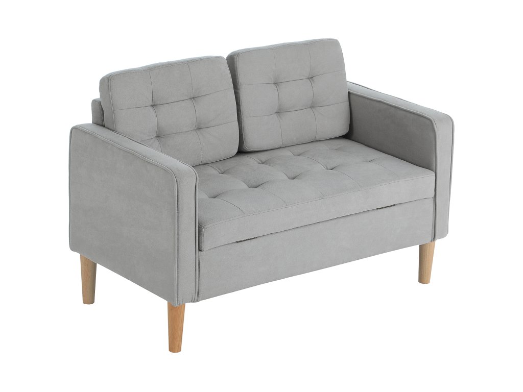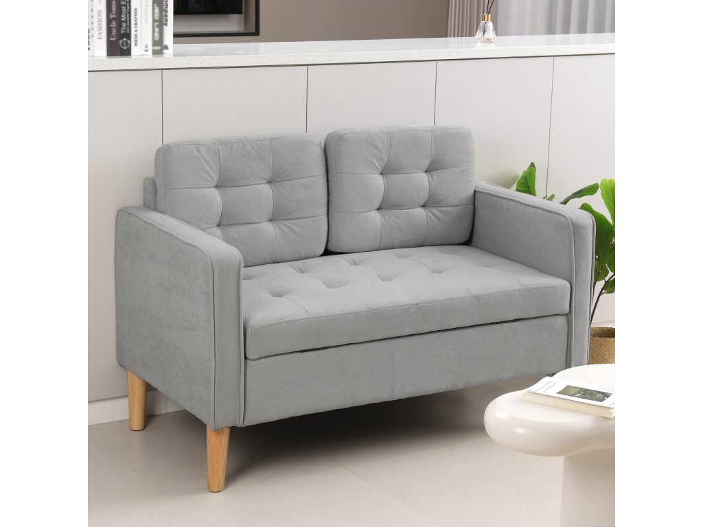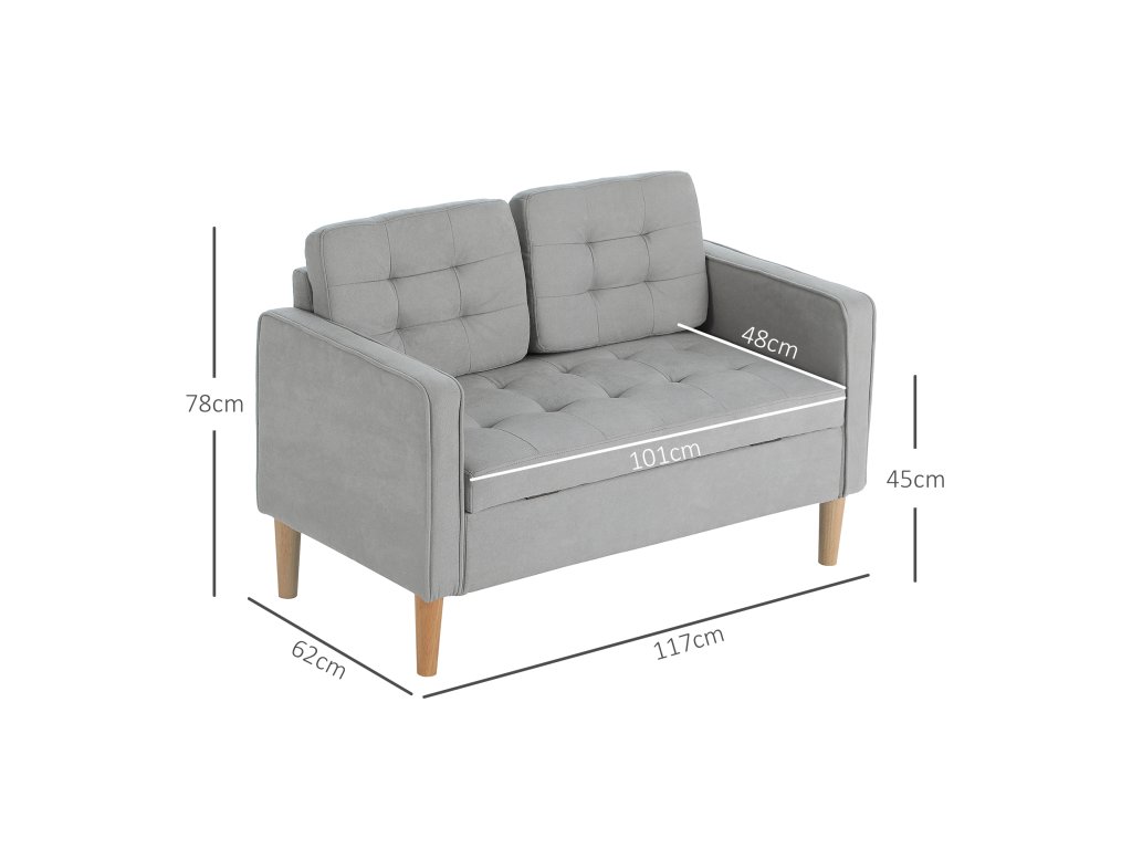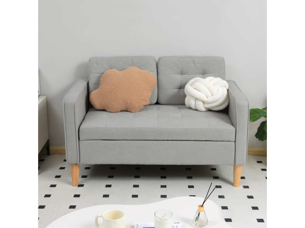 Dvoumístná pohovka HOMCOM s úložným prostorem, prošívání knoflíky, polštáře, kaučukovník, 117x62x78cm, světle šedá