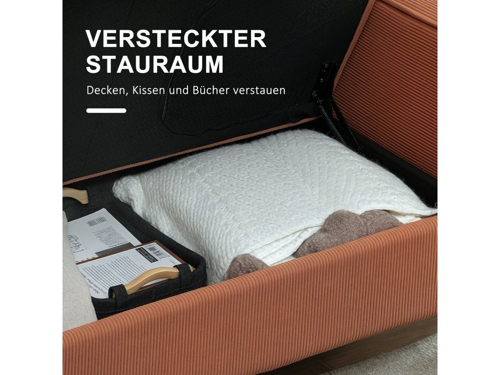 Dvoumístná pohovka HOMCOM s úložným prostorem a masivními dřevěnými nohami, do obývacího pokoje, ložnice, 117 x 63 x 79 cm, oranžová