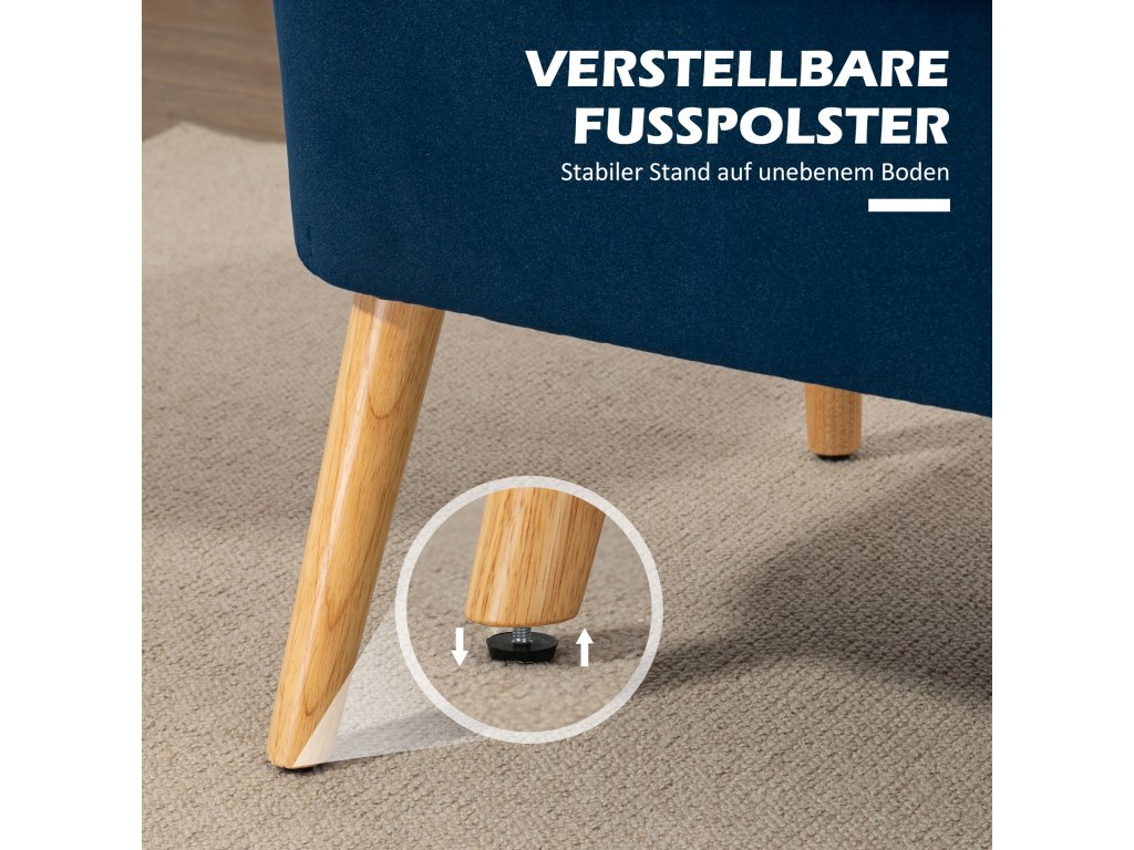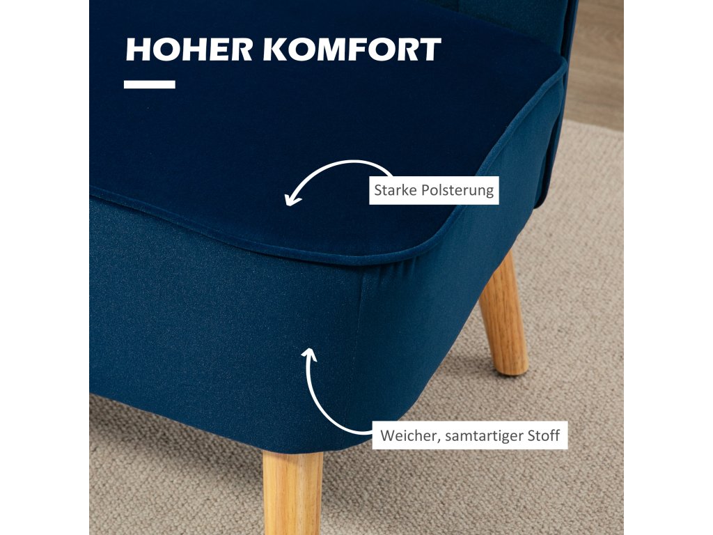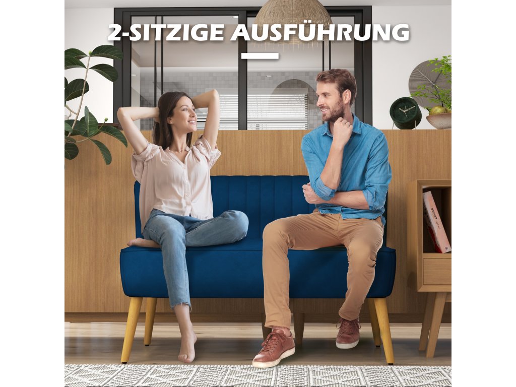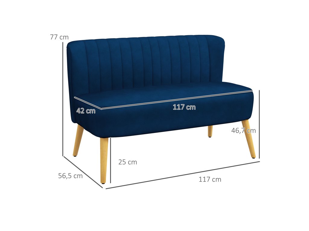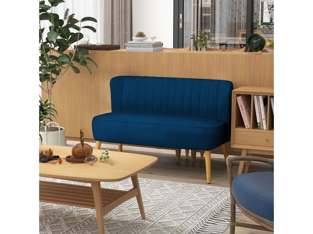 Dvoumístná pohovka HOMCOM v retro designu, dřevěné nohy, 117 cm x 56,5 cm x 77 cm, modrá