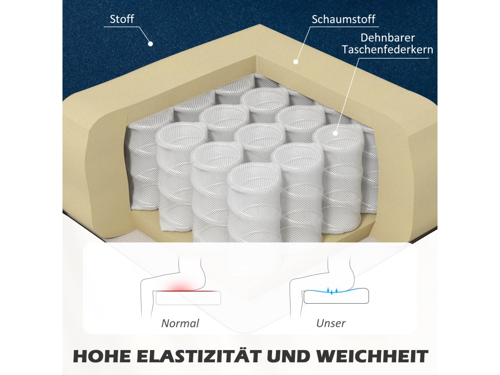 Vysoké pohodlí: 20 cm silné pěnové polstrování s pružinovým jádrem a měkké opěradlo činí pohovku mimořádně pohodlnou. Odpočiňte si zde sami nebo s partnerem!