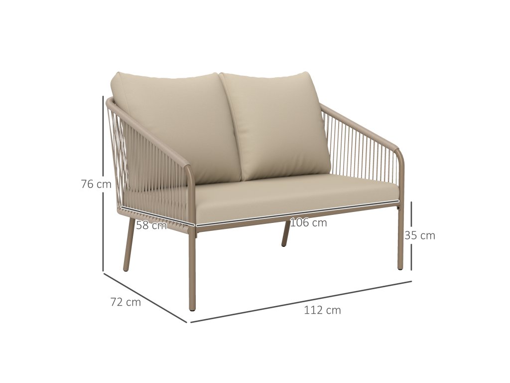 Dvoumístná ratanová pohovka Outsunny s polštáři, sedací souprava, odolná proti povětrnostním vlivům, béžová