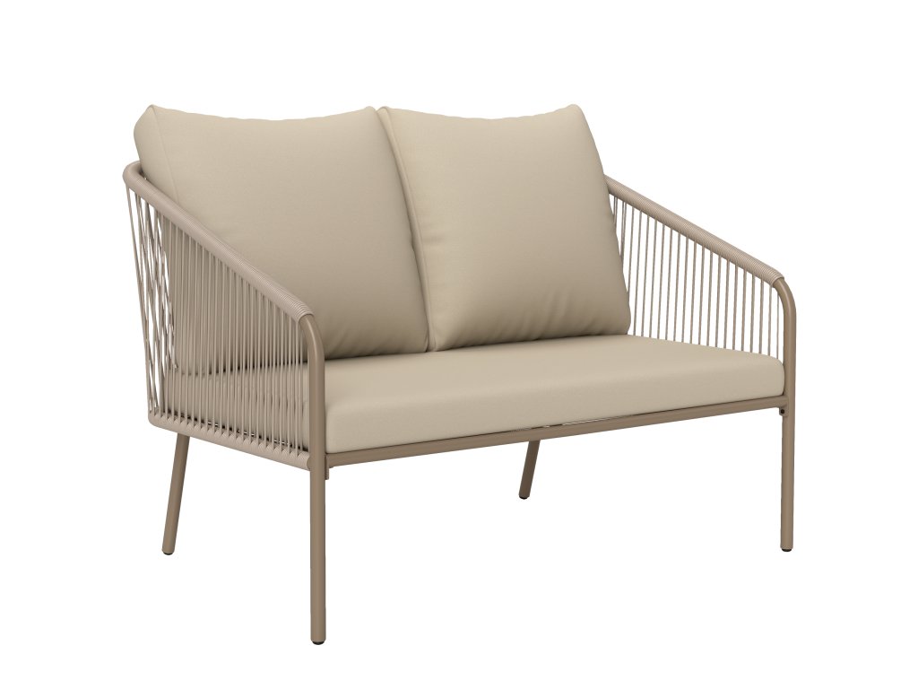 Dvojpohovka s měkkými polštáři: Zažijte útulné chvíle s dostatkem místa k sezení, doplněného měkkými polštáři sedáku a opěradla. Odnímatelné potahy polštářů usnadňují čištění a odolná látka ratanové pohovky zabraňuje obavám z rozlitých nápojů.
