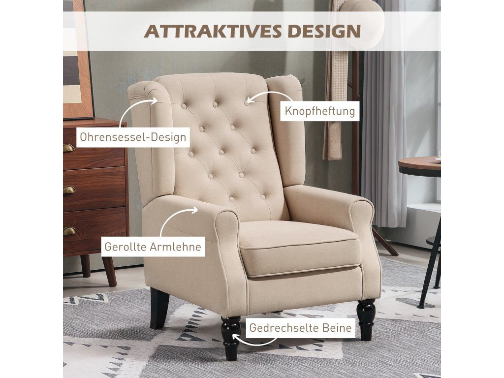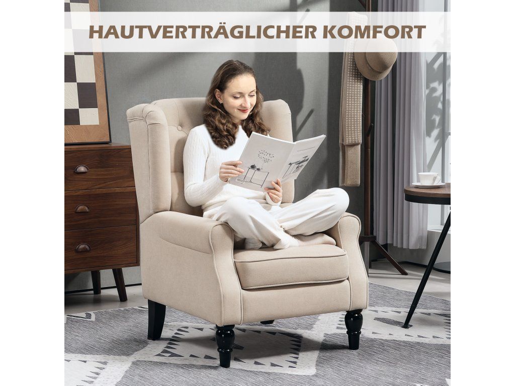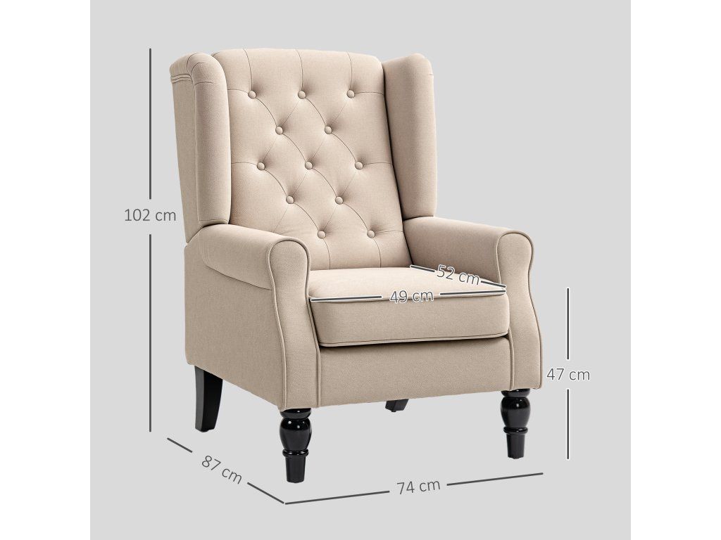 Elegantní křeslo HOMCOM s opěradlem, silně polstrované, snímatelný potah, 74 x 87 x 102 cm, béžová