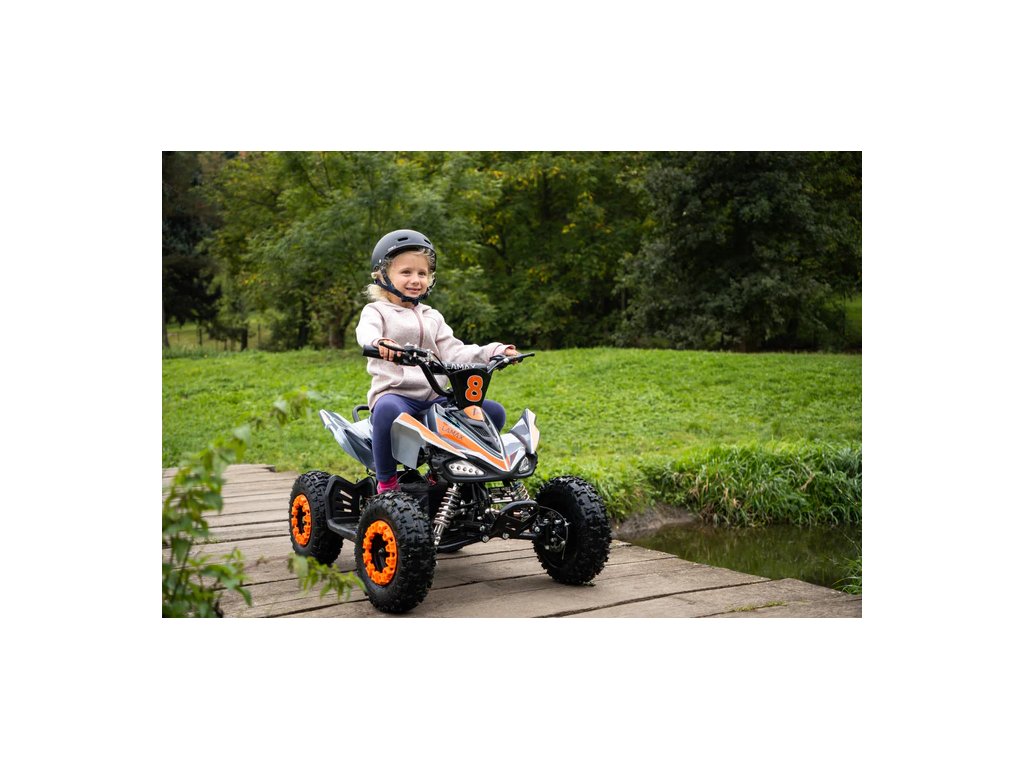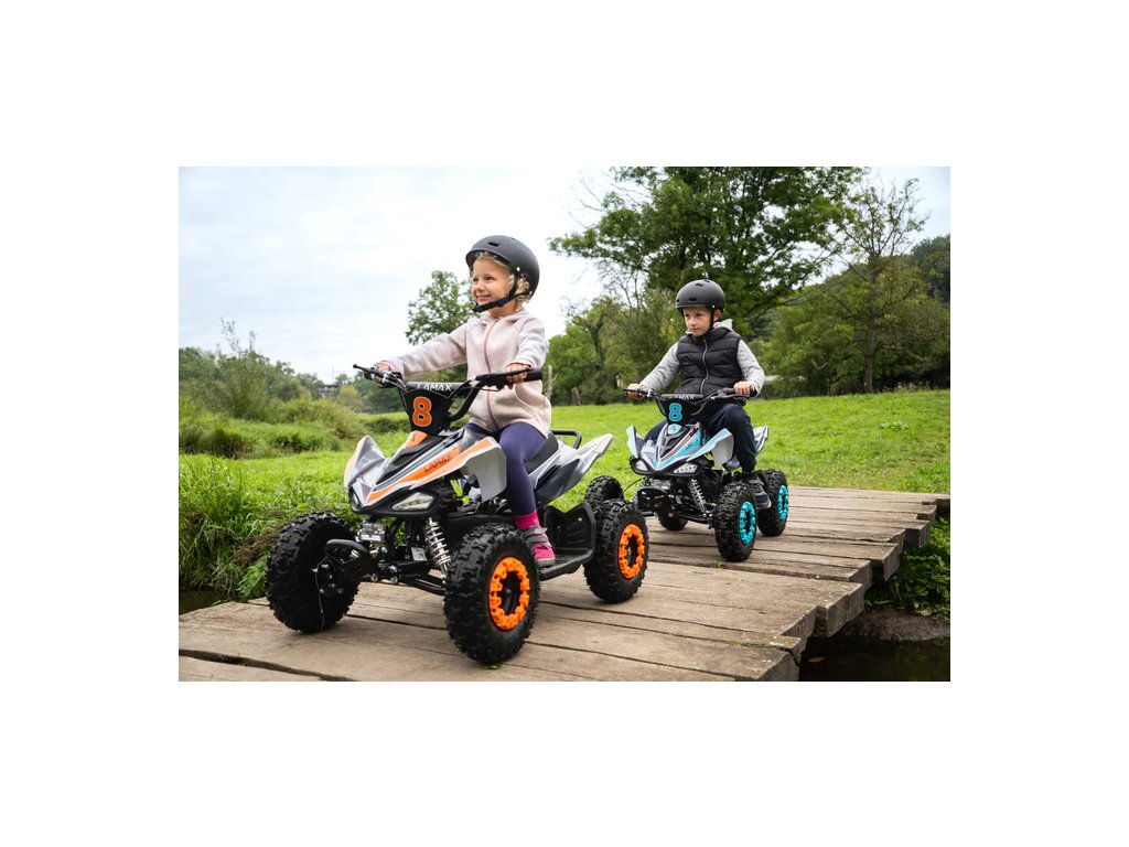 Elektrická jízda už odmalaNikdy není moc brzo začít řádit na elektrické čtyřkolce! LAMAX eTiger ATV40S pohltí vaše potomky ve věku od tří do sedmi let. Už žádný – mně se nechce ven – s výdrží až hodinu a půl, parádním designem a maximálkou 25 km/h dostane každá procházka jinej rozměr. Elektromotor s výkonem 800 W je naprosto tichý, takže zábavu nepřekazí ani naštvanej soused. Bezpečí je u dětí na prvním místě – i rozjetou jízdu na fleku zastaví prvotřídní kotoučovky a samobrzdící systém. K tomu vezměte světla, 13“ kola a hned je jasný, co bude nový nejoblíbenější dárek. Navíc, již nemusíte trávit hodiny složitým montováním. Jedině od nás dostanete čtyřkolku již složenou, seřízenou, otestovanou a připravenou pro vaši jízdu.