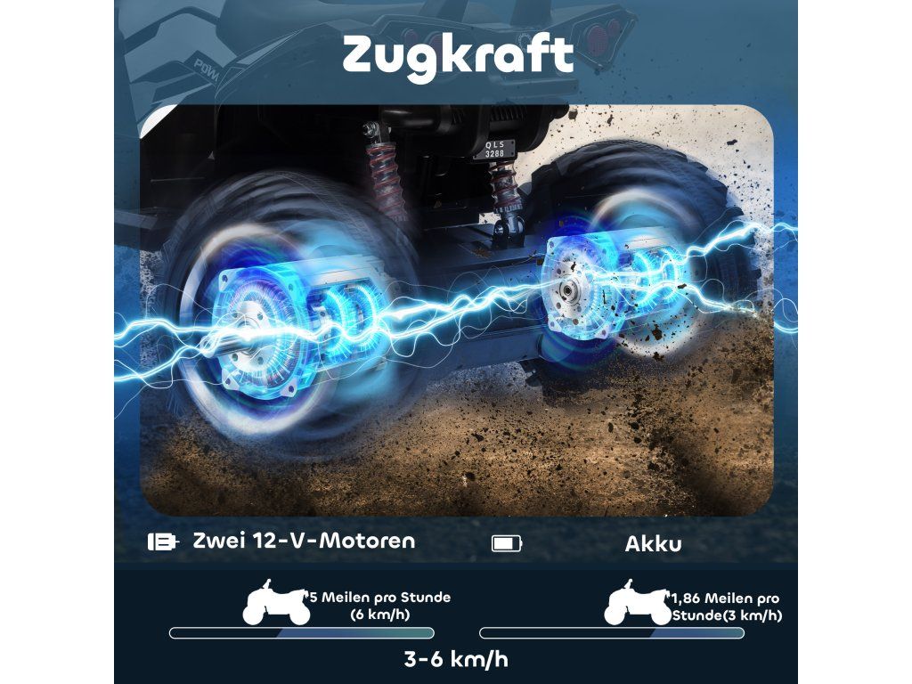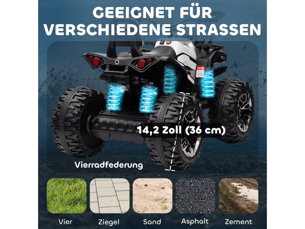 Stvořeno pro dobrodružství: S velkými 36cm pneumatikami nabízí tato dětská elektrická čtyřkolka perfektní přilnavost na trávě, hlíně a písku. Robustní rám a design vhodný pro děti zaručují stabilní a bezpečnou jízdu plnou venkovní zábavy na různých površích.