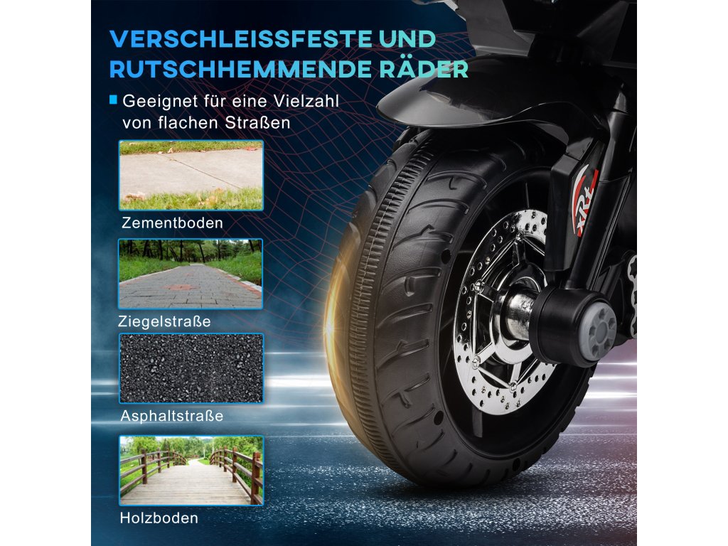 ✔ Pneumatiky o šířce 7,5 cm na elektrické dětské motorce pro stabilní a plynulou jízdu