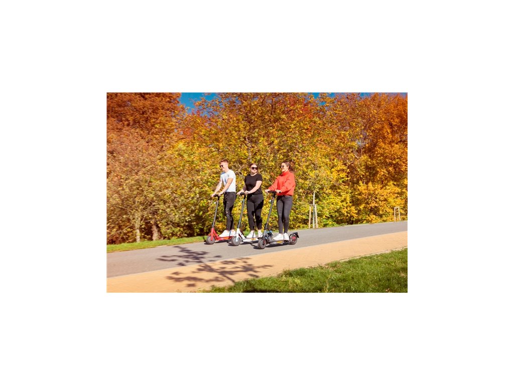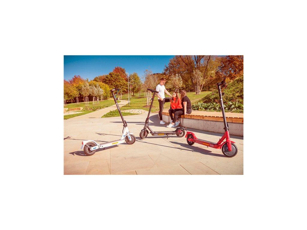 Elektrokoloběžka, dojezd až 25 km, maximální rychlost 25 km/h, výkon motoru 350 W, nosnost až 100 kg, anti-defekt pneumatiky, APP, tempomat, stupeň krytí IP54
