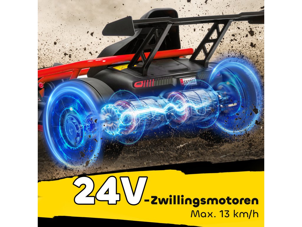 ✔ Dva 24V motory v této elektrické motokáře dosahují rychlosti 6–13 km/h pro vzrušující driftování