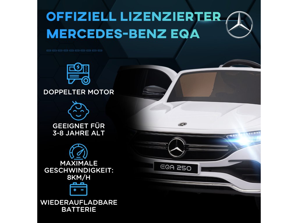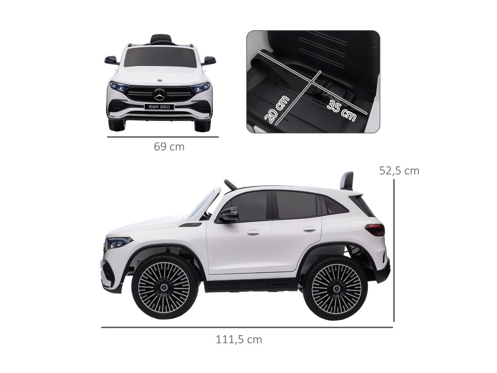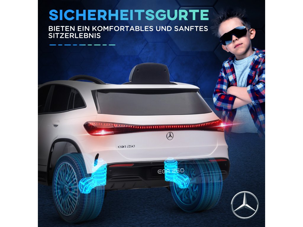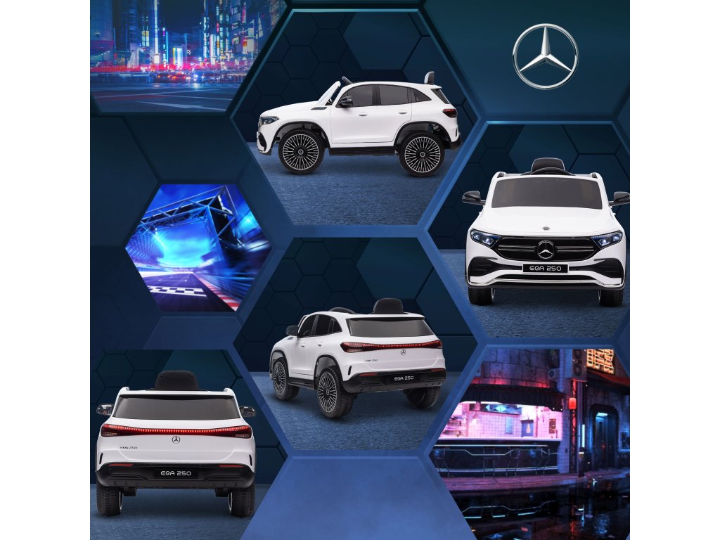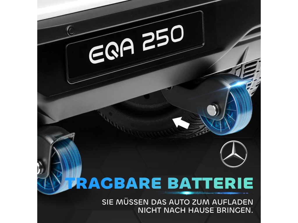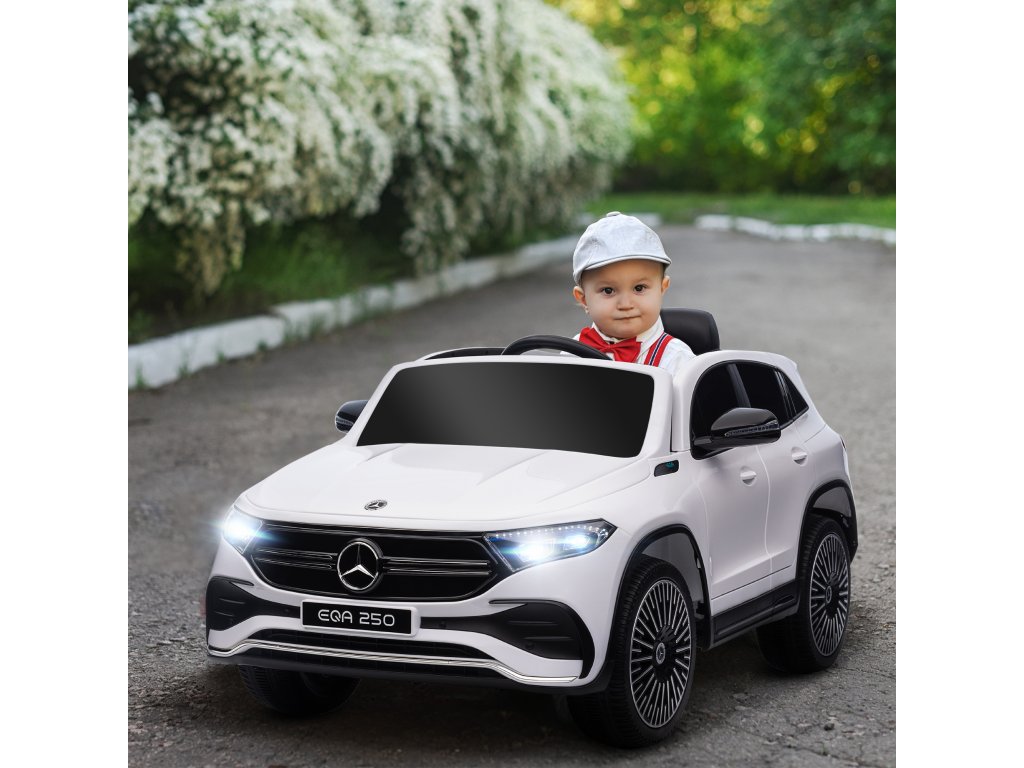 Licencovaný elektrický Mercedes-Benz EQA: Náš licencovaný elektrický Mercedes je ideální pro každého malého začínajícího řidiče. 12V baterie se snadno vyjímá a dobíjí.