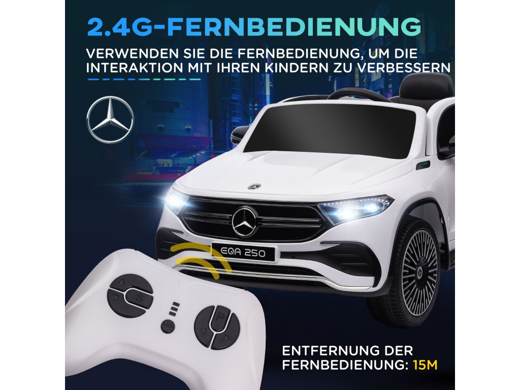 Elektrické dětské odrážedlo HOMCOM, licencované Mercedes-Benz EQA, 3-8 km/h, hudba, světlomety, klakson, dálkové ovládání, bílé