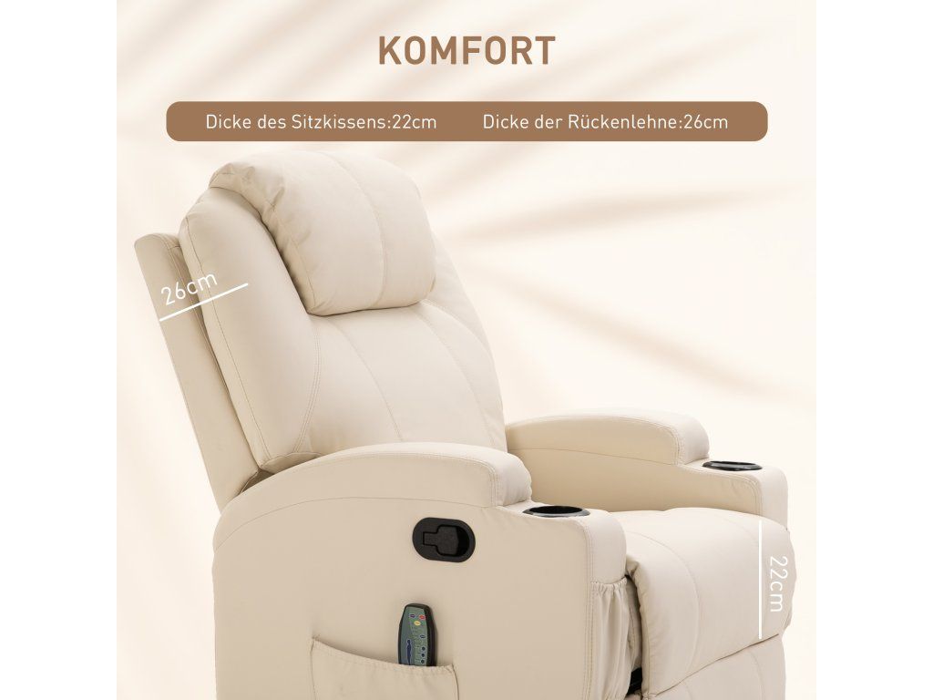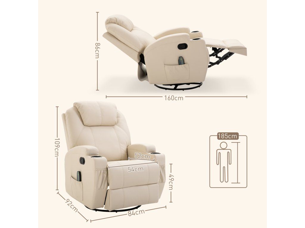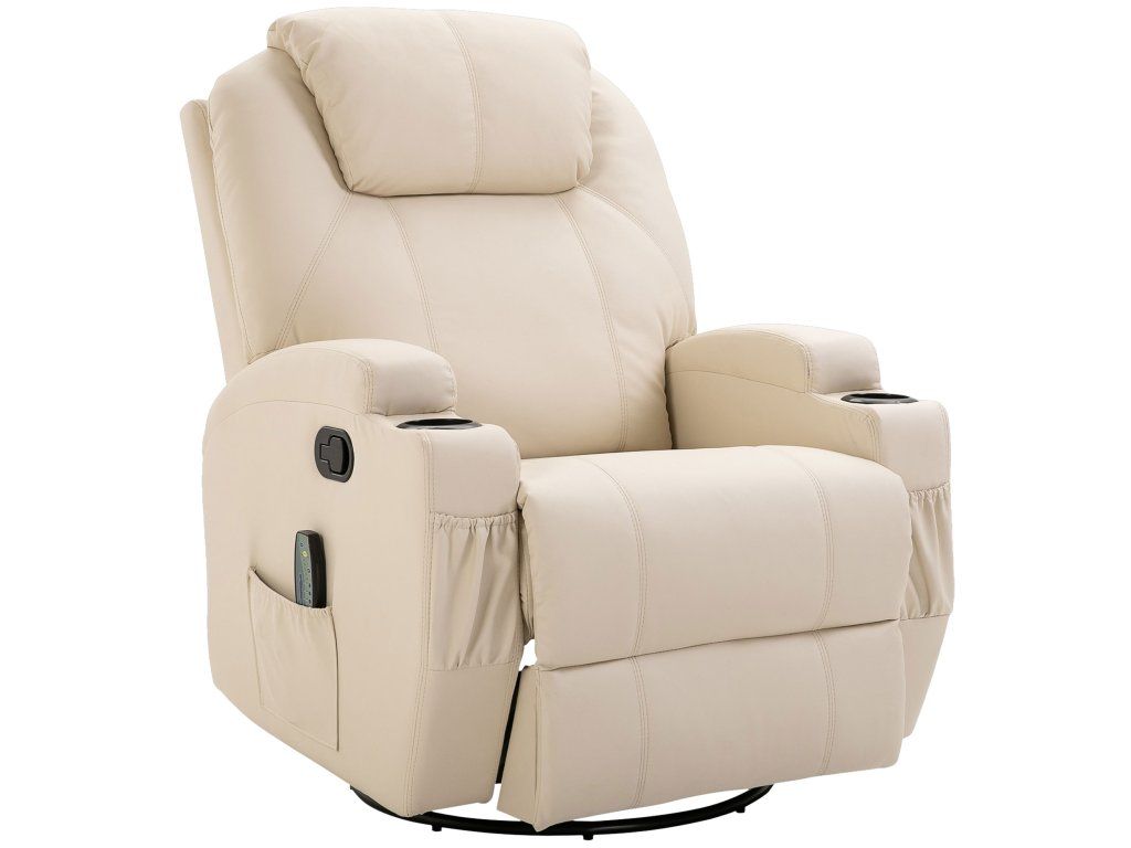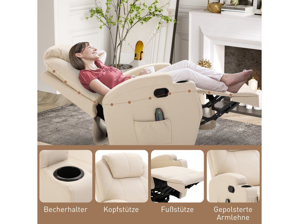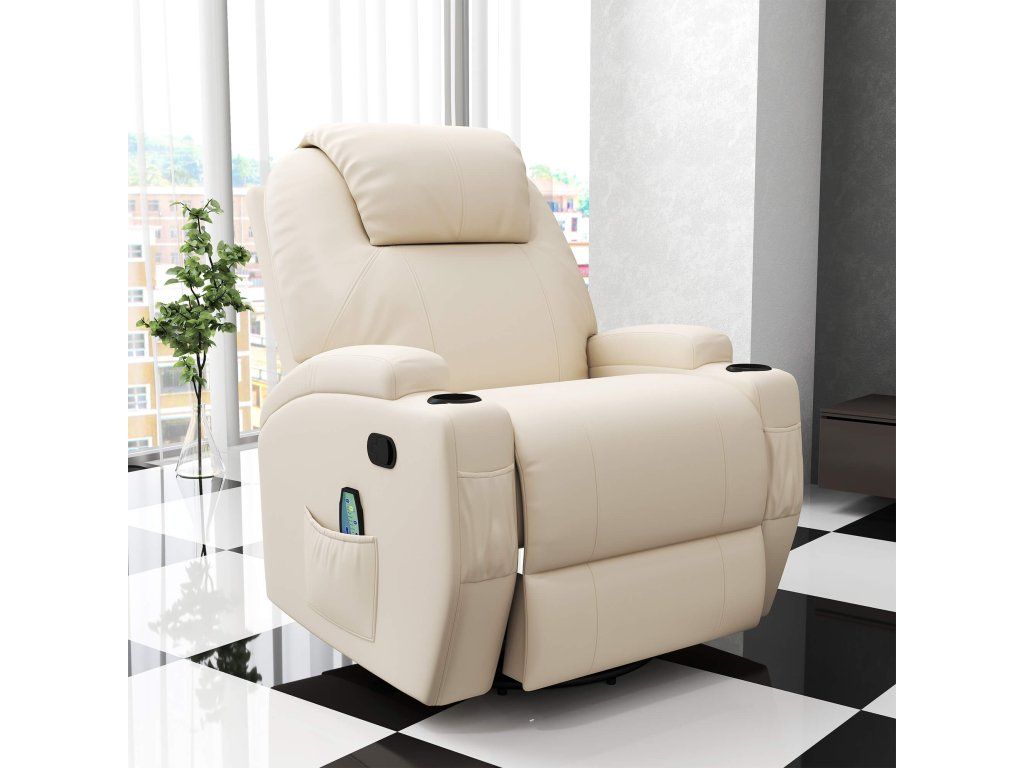 Elektrické masážní křeslo, 5 masážních režimů, umělá kůže, krémově bílá, 84x92x109cm