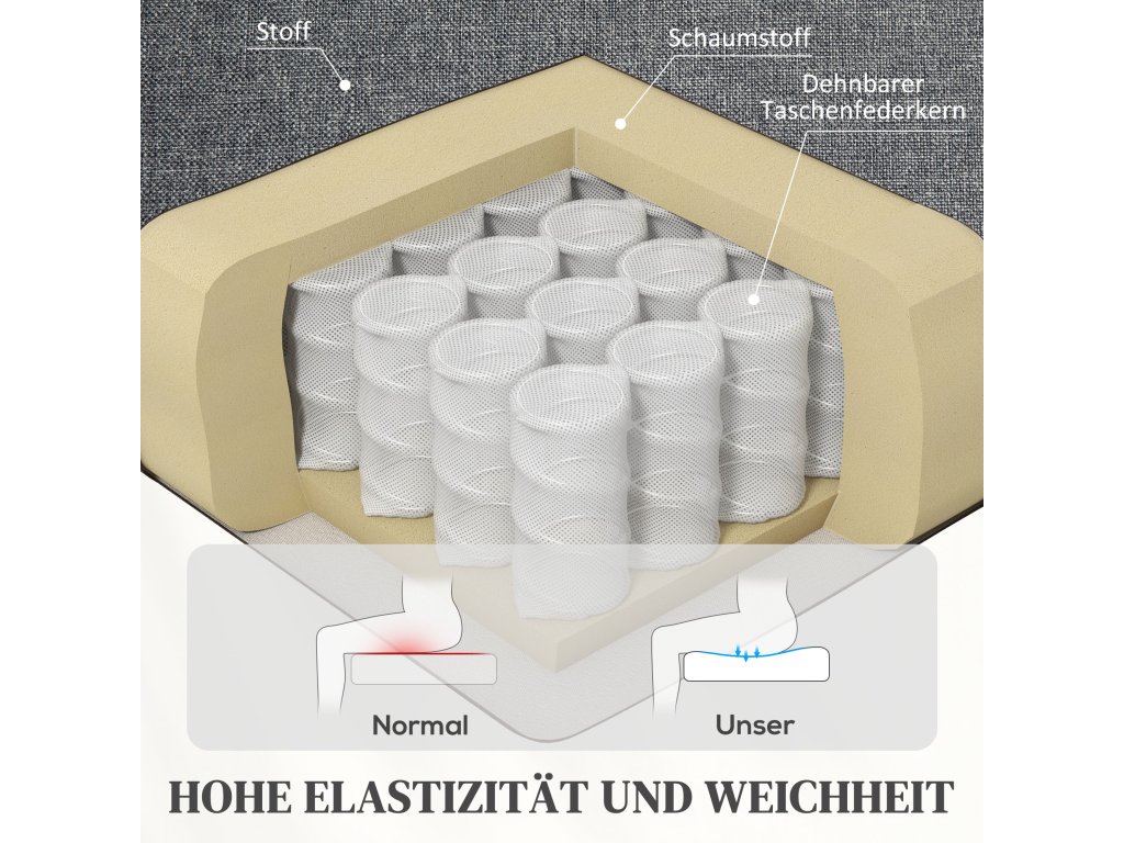 ✔ Pružinová konstrukce s kapsami a silná pěna střední hustoty pro optimální pohodlí
