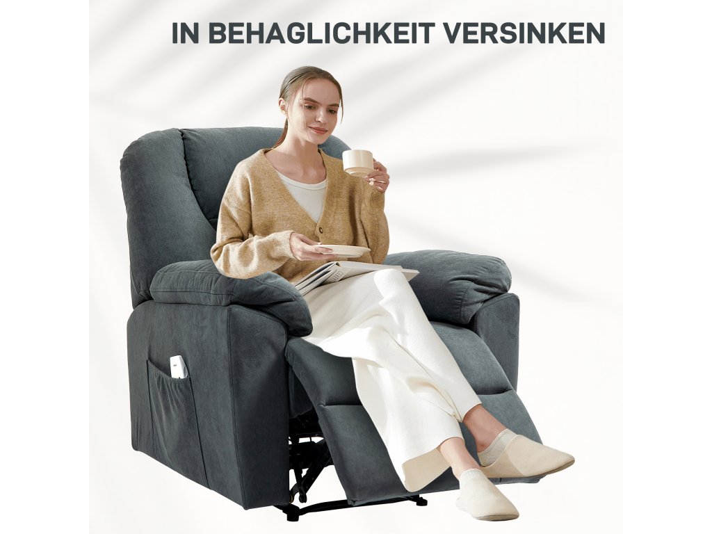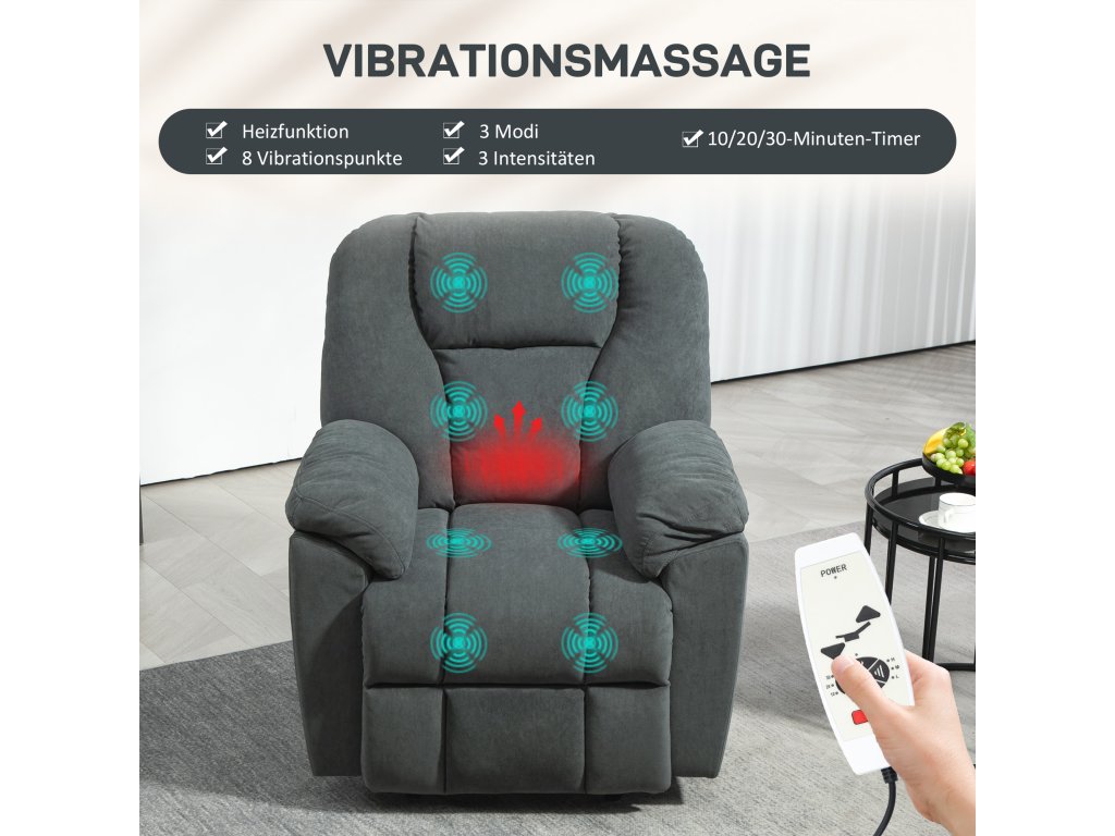 Cílená masáž a jemné teplo: Užijte si čas s osmi vibračními masážními body polohovacího křesla, které uvolní vaše záda, spodní část zad, stehna a nohy. Vyberte si ze tří režimů, tří úrovní intenzity a možnosti vyhřívání bederní páteře.