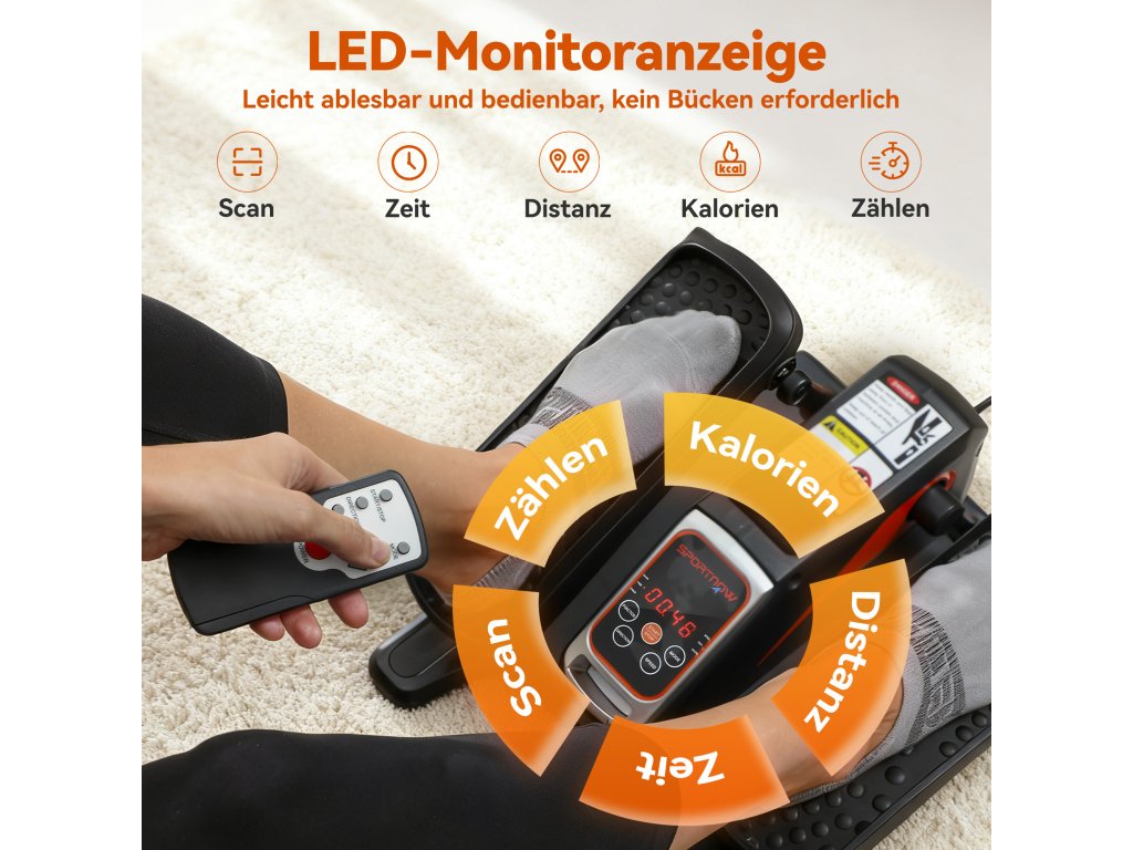 LED monitor a dálkové ovládání: Snadné ovládání. Vestavěný LED monitor mini crossového trenažéru jasně zobrazuje všechna tréninková data, jako je skenování, čas, vzdálenost, kalorie a počítadlo. Dodávané dálkové ovládání umožňuje pohodlné ovládání režimů a rychlosti ze sedadla.