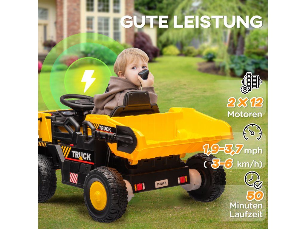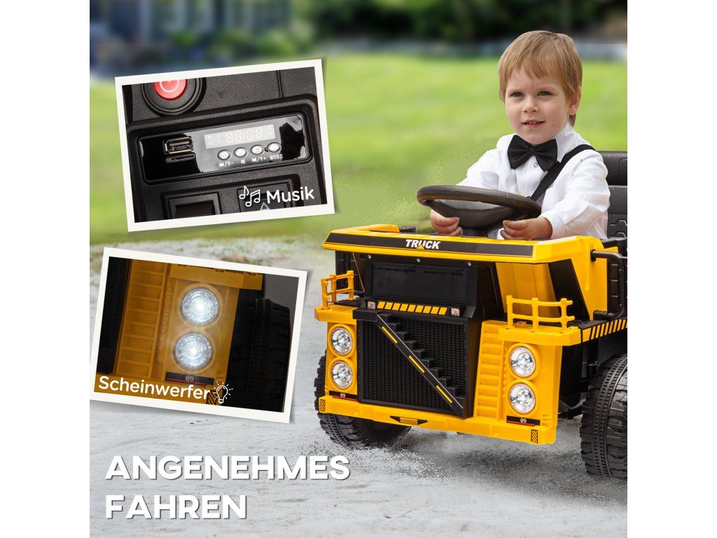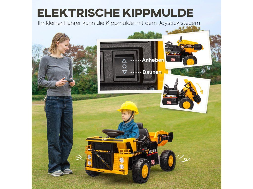 Elektrický sklápěč AIYAPLAY, 3–6 km/h, autíčko s odrážedlem, výklopná ložná plocha, světla a hudba, pro 3–5 let
