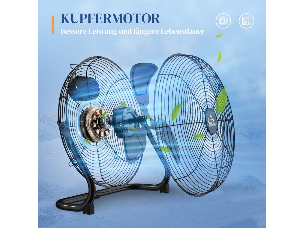 ✔ Měděný motor zajišťuje, že 12" kovové lopatky poskytují silný proud vzduchu.