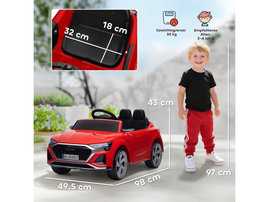 Elektromobil AIYAPLAY, 12V Audi Q8, 3-5 km/h, dálkové ovládání, světlomety, hudba, červené
