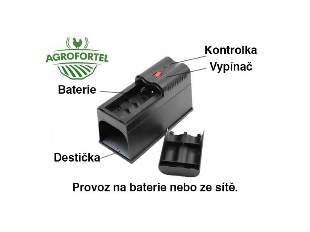 Jakmile myš nebo krysa vstoupí do elektronické pasti, obvod se uzavře a elektrický šok zvíře zabije rychle a neškodně (žádné zbytečné utrpení zvířete !!!). Tato elektrická past je bezpečná pro použití (schváleno CE) a je standardně dodávána s adaptérem.