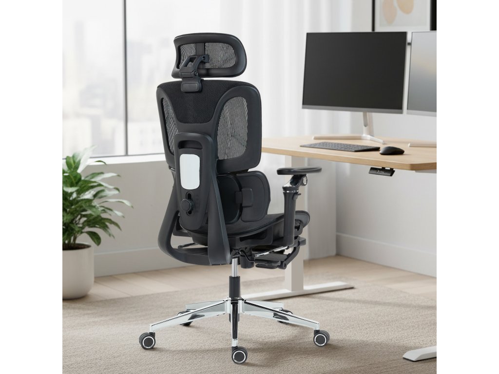 Ergonomická opora: Přizpůsobte si pohodlí s touto kancelářskou židlí, která je vybavena nastavitelnou opěrkou hlavy, opěradlem, bederní opěrkou, hloubkou sedáku a 6D područkami pro zajištění správné opory po celý pracovní den. Její flexibilní design je vhodný pro uživatele až do výšky 185 cm.