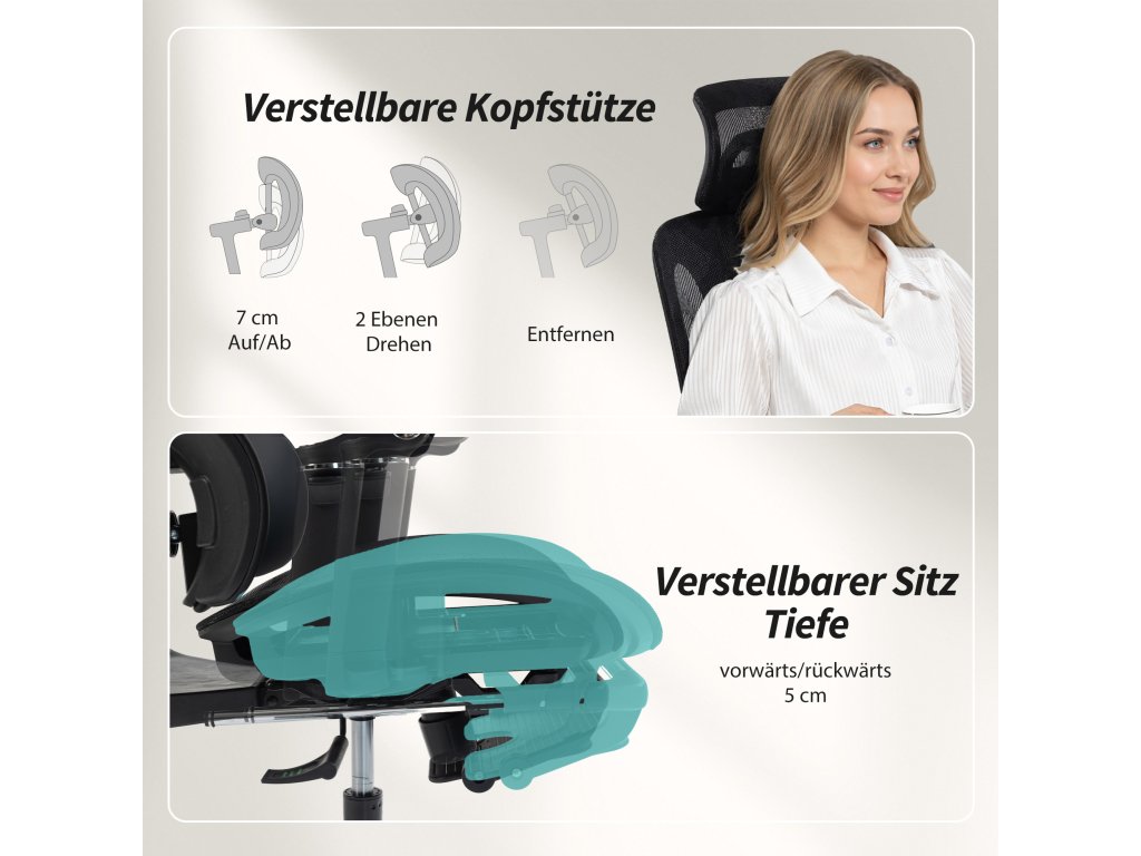 ✔ Nastavení výšky opěrky hlavy: 7 cm