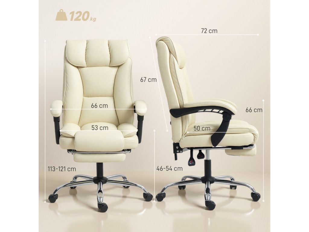 Trápí vás dlouhé pracovní dny a hektický domácí život? Standardní kancelářská židle je nedostatečná, unavuje vás a způsobuje obavy z polití nebo škrábanců od domácích mazlíčků. Tato kancelářská židle s podnožkou optimalizuje váš pracovní prostor. Díky 155° sklonu, ideálnímu pro rychlé zdřímnutí, snadno udržovatelná umělá kůže a měkké polstrování této otočné židle zajišťují trvalé pohodlí a klid, čímž se bezproblémově propojuje práce s relaxací.
