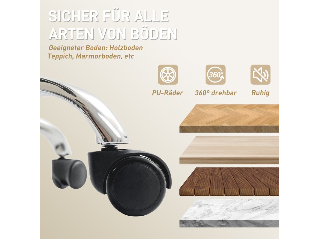 ✔ Otočná kolečka o 360° a hladce se otáčející kolečka umožňují flexibilní pohyb