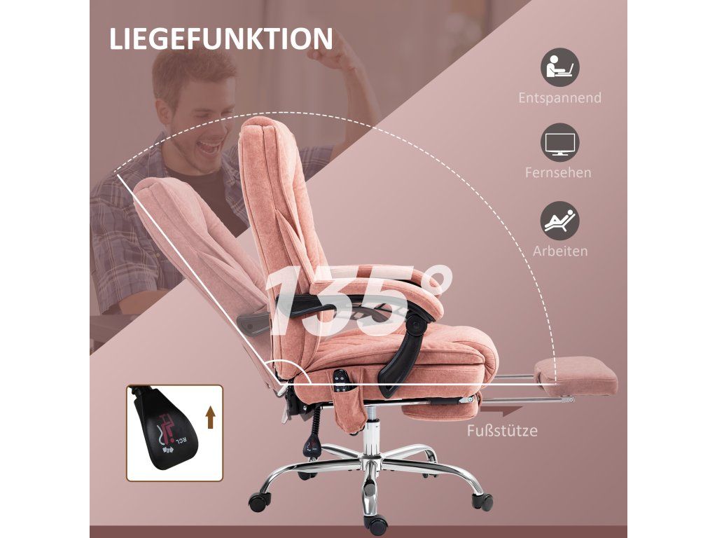 Ergonomická kancelářská židle Vinsetto s masážní funkcí, podnožka, otočná, na kolečkách, růžová