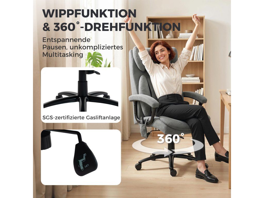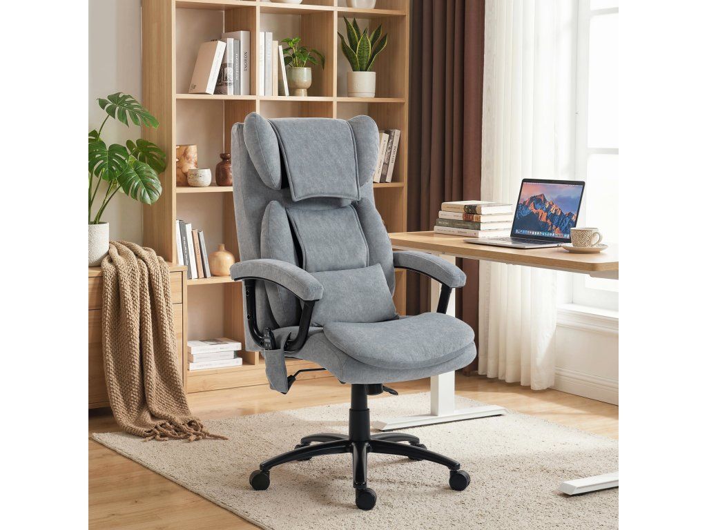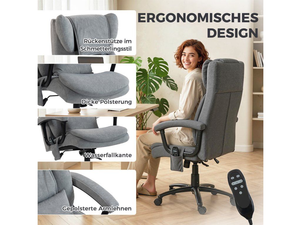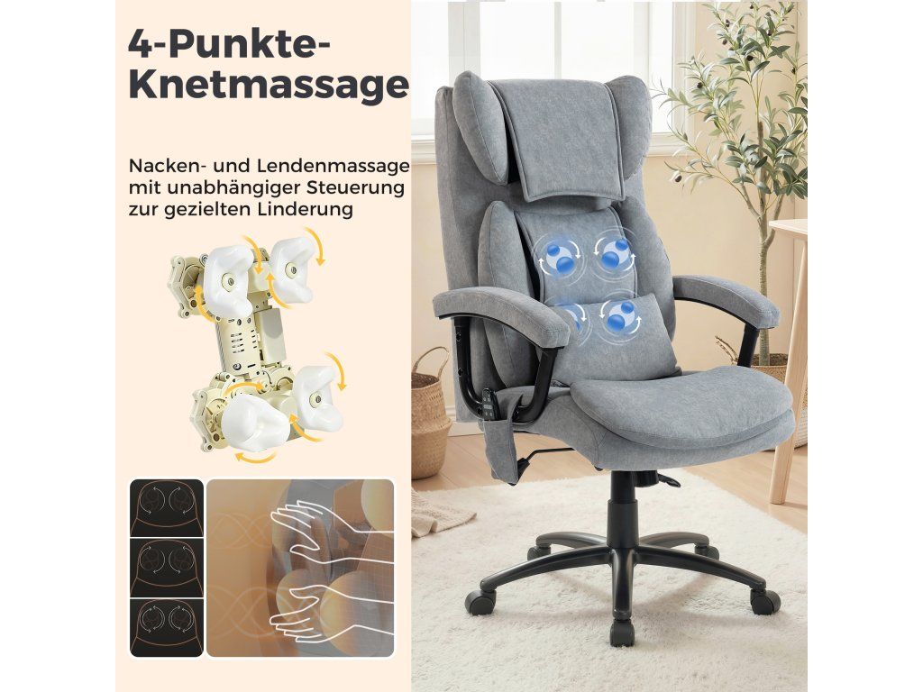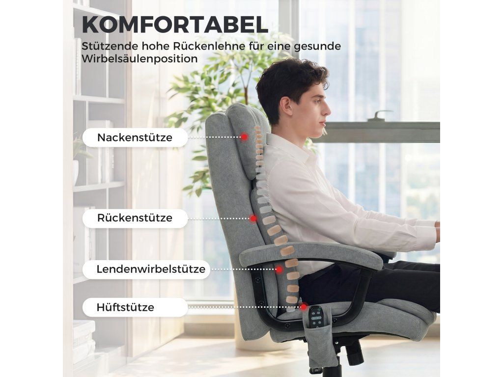 ✔ Dva hnětací uzly v oblasti krku a bederní oblasti dělají z této židle relaxační kancelářskou židli s masážní funkcí, která pomáhá ulevit od bolesti svalů. Ovládá se ručním ovladačem.