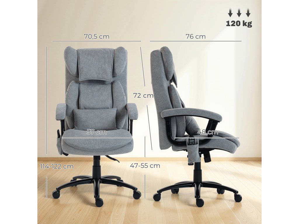 Ergonomické masážní kancelářské křeslo HOMCOM se 4 hnětacími body, manažerské křeslo s vysokým opěradlem ve tvaru motýla, široké sedák, šedé