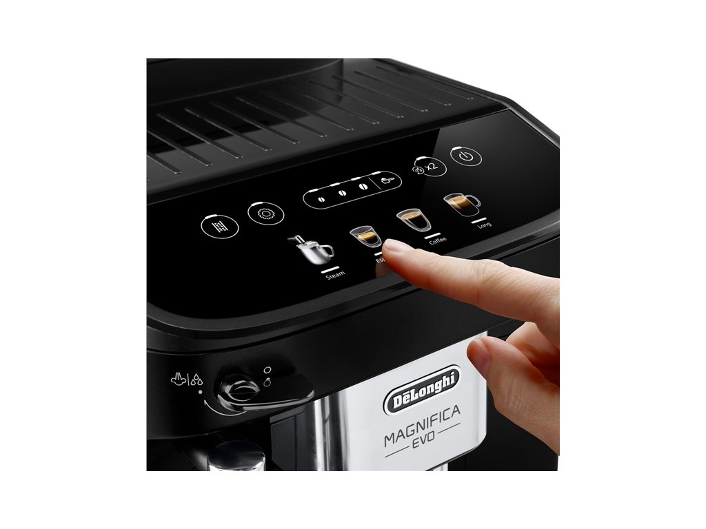 Magnifica Evo spojila zkušenosti, know-how a technologie společnosti De'Longhi pro ty nejlepší výsledky v šálku. Od zrnka kávy do vašeho šálku. Speciálně navržený pro zákazníky, kteří vstupují do světa plnoautomatických kávovarů a hledají moderní design a přípravu nápoje jedním stisknutím tlačítka. Nový plnoautomatický kávovar od společnosti De'Longhi uspokojí všechny chuťové požadavky díky uživatelsky přívětivému rozhraní.