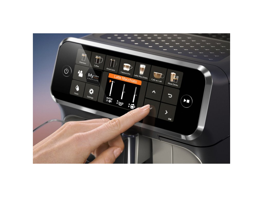 Nastavitelné funkce: 5 stupňů intenzity kávy, teplota a velikost šálku, Extra shot - silnější káva
