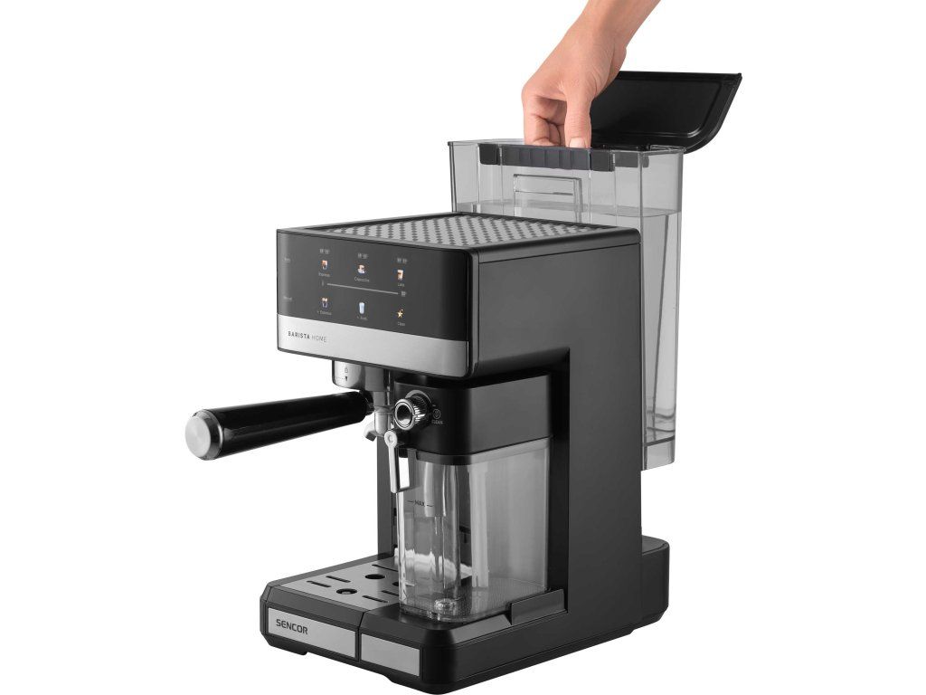• Odnímatelná průhledná nádržka na mléko o objemu 500ml s odnímatelným zařízením na napěnění mléka