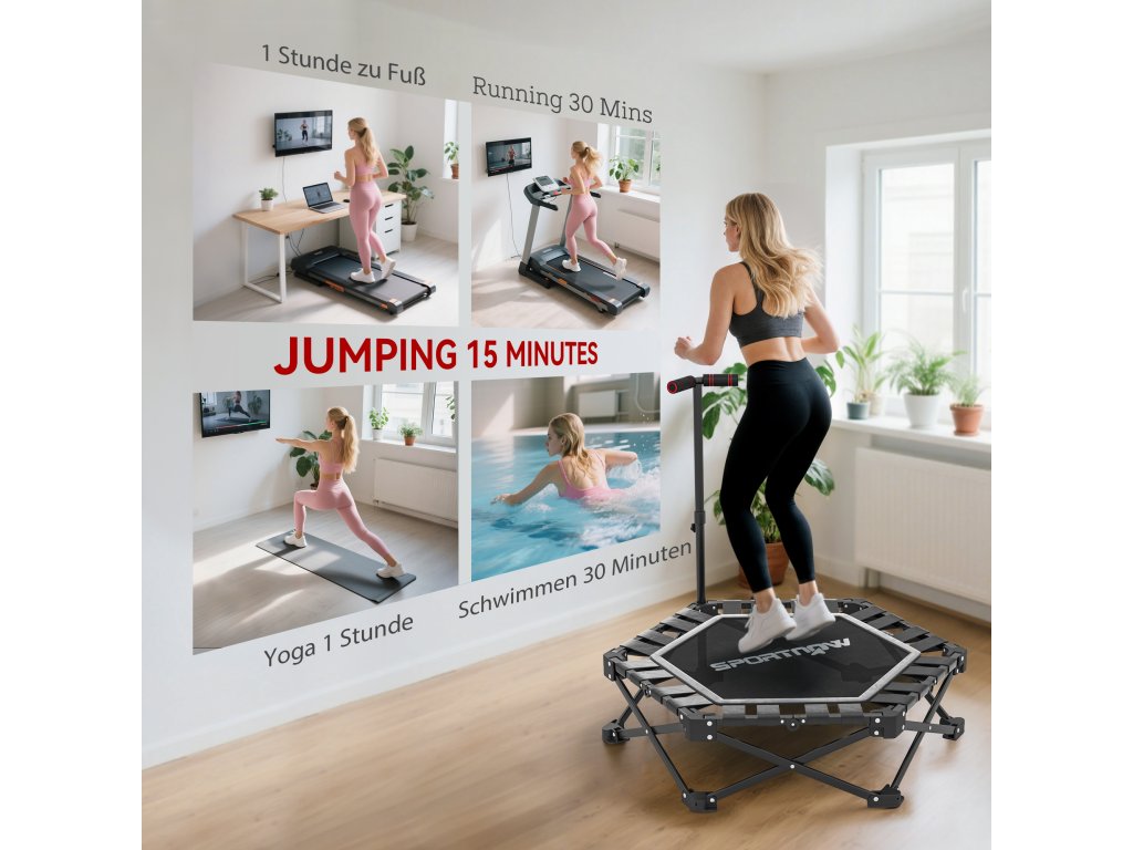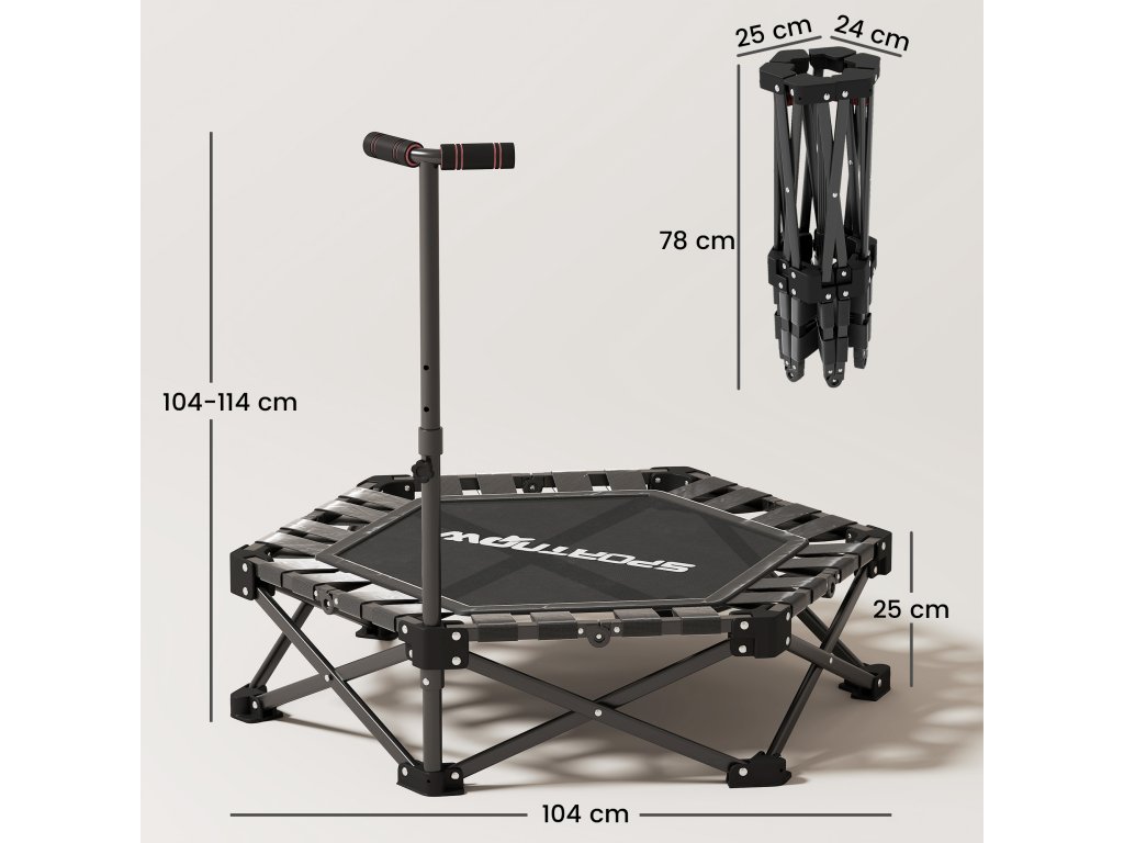 Máte už dost neohrabaného tréninkového vybavení a obav o stabilitu? Vaše rodinné fitness si zaslouží víc než nestabilní vybavení, které zabírá místo. Skládací fitness trampolína SPORTNOW s robustním ocelovým rámem a nastavitelnou T-rukojetí umožňuje bezpečné skákání pro každého. Po tréninku lze tuto malou trampolínu snadno složit, abyste mohli svůj prostor opět nerušeně využívat.