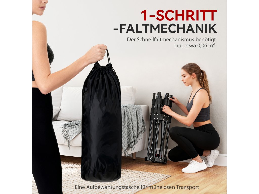 - Jednoduché skládání v 1 kroku: Díky patentovanému rychloskládacímu mechanismu lze trampolínu postavit za pouhých 5 sekund a opět složit za 3 sekundy - ideální pro každodenní trénink. Ve složeném stavu se vejde do každé tašky, a proto je ideální na cesty