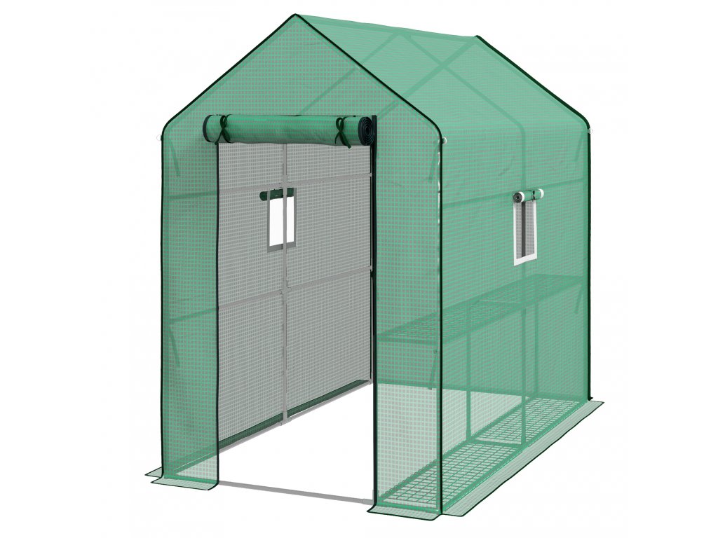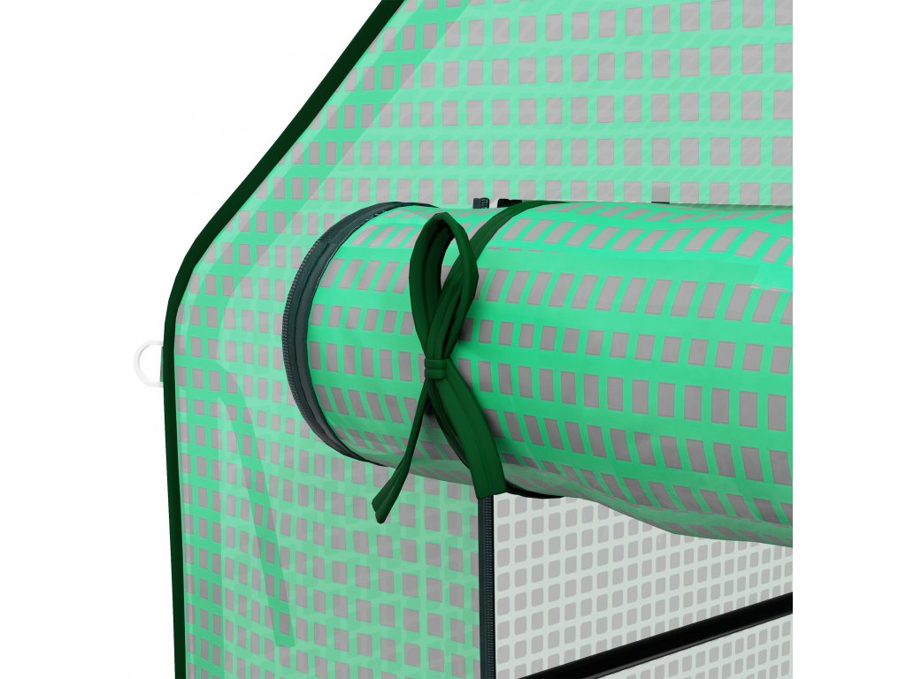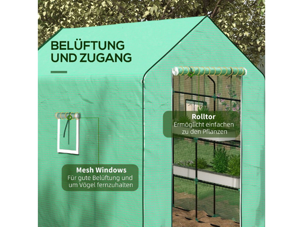 ROLOVACÍ DVEŘE A OKNA: Velké, shrnovací dveře na zip poskytují snadný přístup do vašeho zahradního skleníku, zatímco stíněná okna zajišťují, aby nezvaní okřídlení hosté zůstali venku. Několik otvorů umožňuje příčné větrání, takže si můžete sami regulovat teplotu a vlhkost