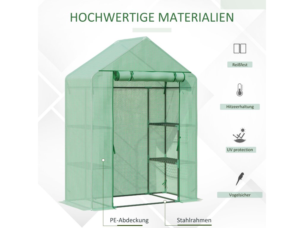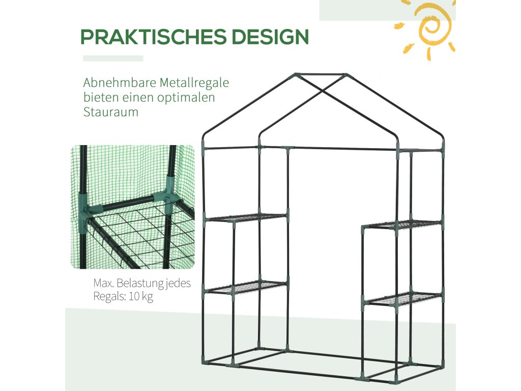 S tímto přenosným skleníkem od Outsunny můžete prodloužit své vegetační období tím, že ochráníte své rostliny před chladem a ptáky. S rolovacími dvířky pro vstup a výstup, abyste měli ke svým rostlinám kdykoli přístup. Jednoduše nastavit, začít a růst. Tento malý skleník je ideálním řešením pro zahrádkáře, kteří chtějí v chladném období bezpečně umístit své rostliny.