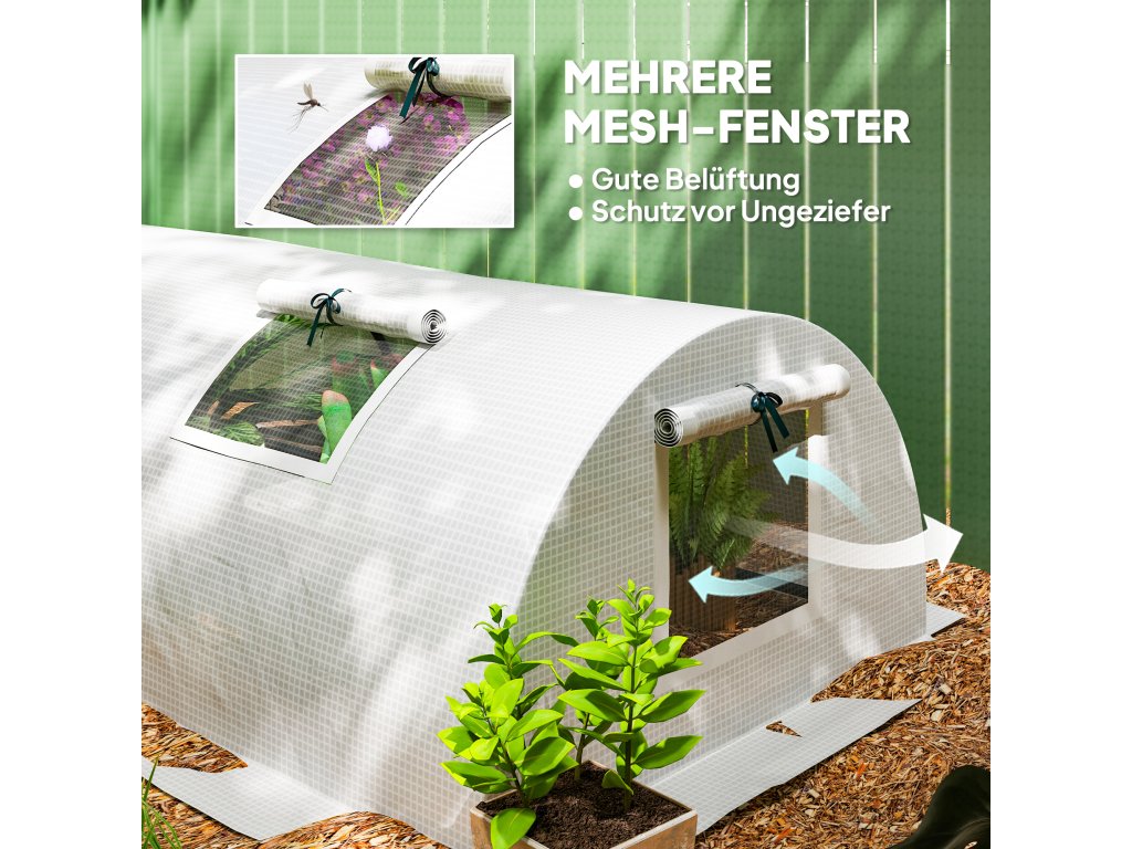 Tento přenosný skleník od společnosti Outsunny je ideální pro zahradní nadšence, kteří hledají způsob, jak zahradničit bez ohledu na roční období. Skleník zajistí, že vaše rostliny a zelenina budou lépe chráněny. Četná okna síťového skleníku zajišťují vynikající větrání uvnitř a zároveň zabraňují přístupu zvířat, například ptáků. Ideální řešení pro pěstování rostlin po celý rok.