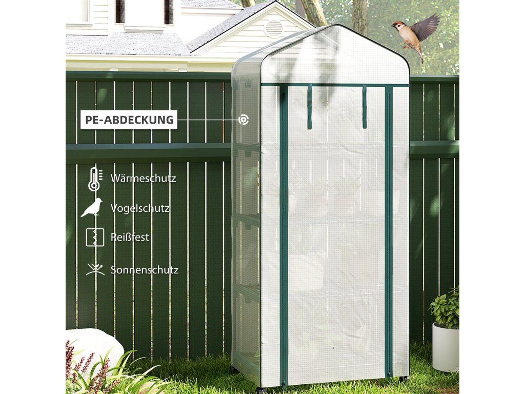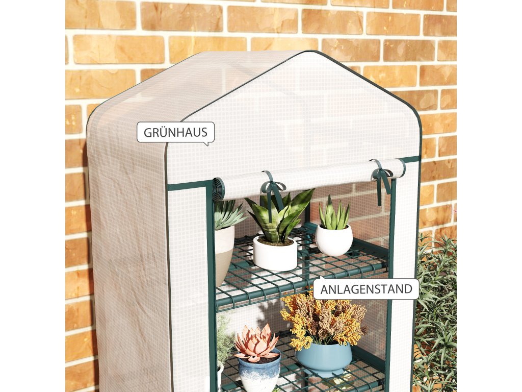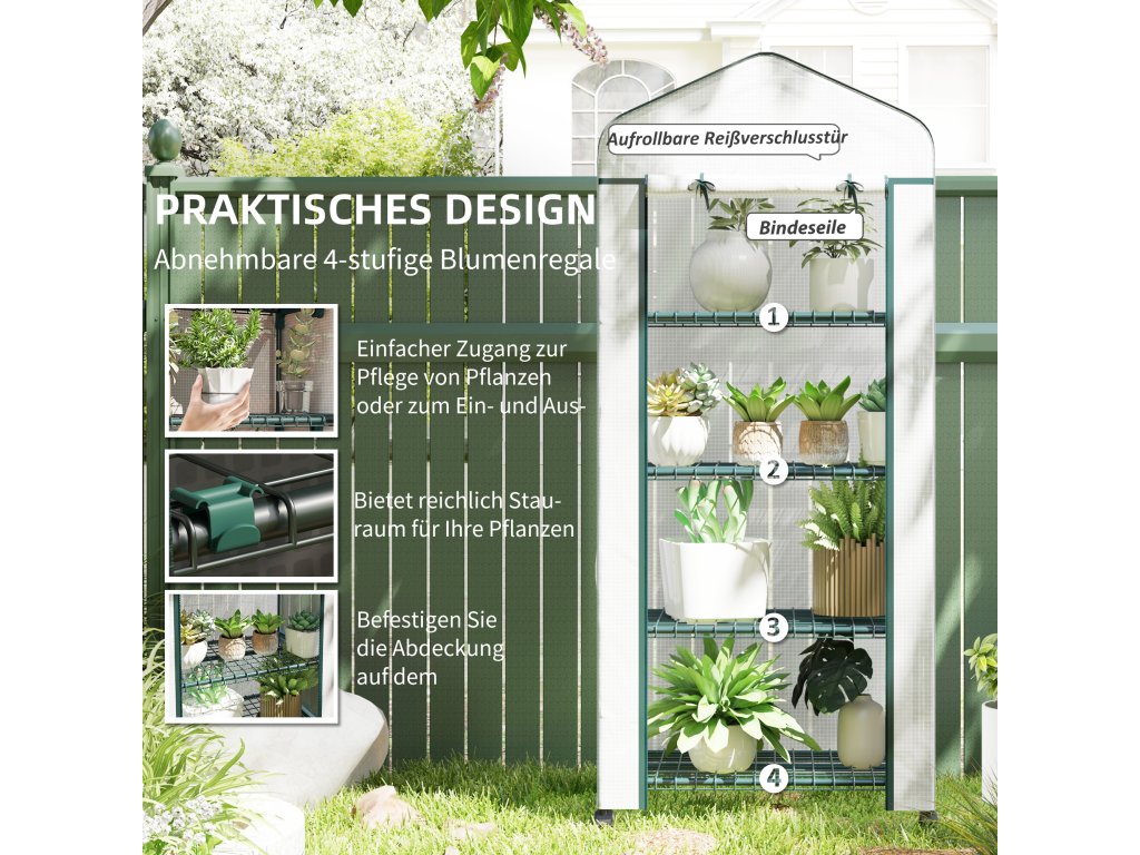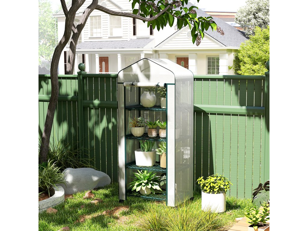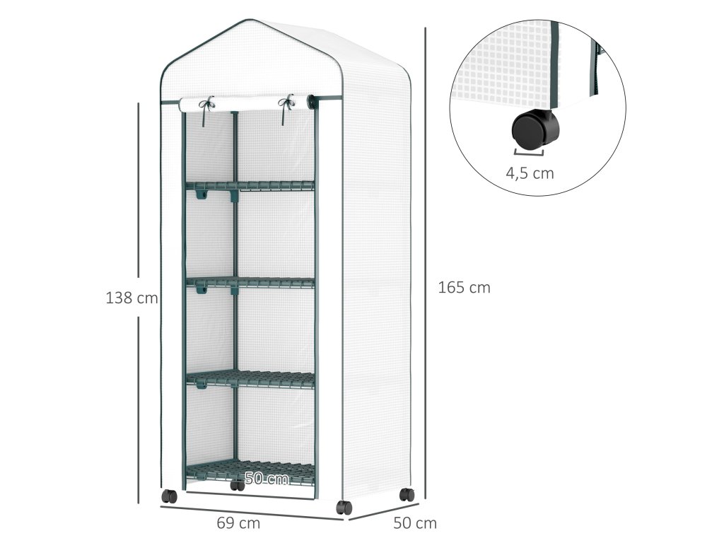 Fóliový skleník Outsunny, skleník, miniskleník, skleník na rostliny, chladicí rám, 4 police, 69 x 50 x 165 cm, bílá barva