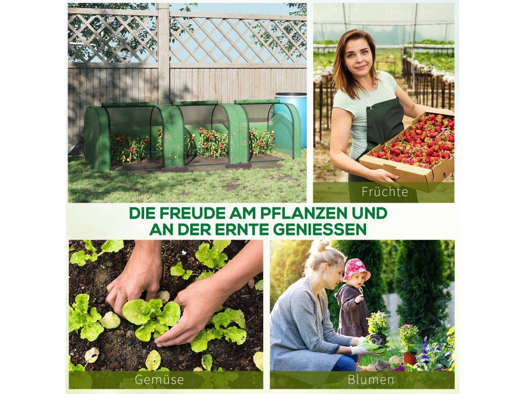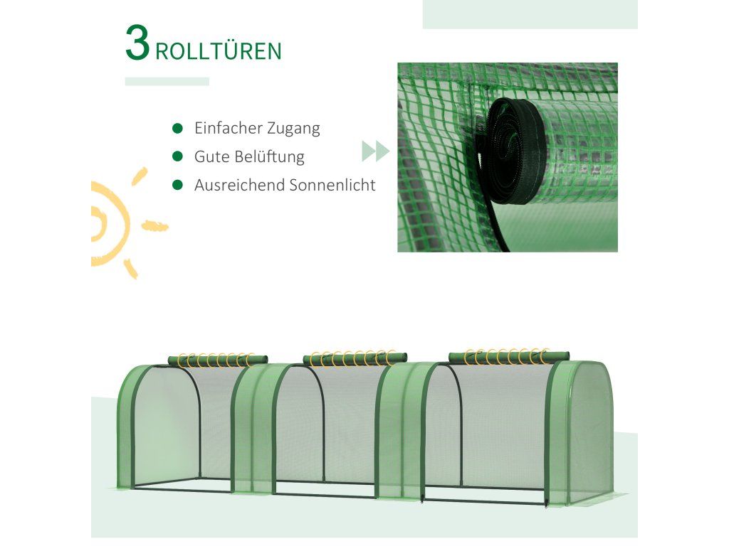Fóliový skleník Outsunny, troje rolovací dveře, robustní plachta, ocelový rám, zelený, 2,95 x 1 x 0,8 m