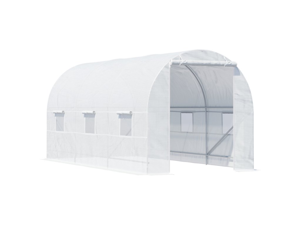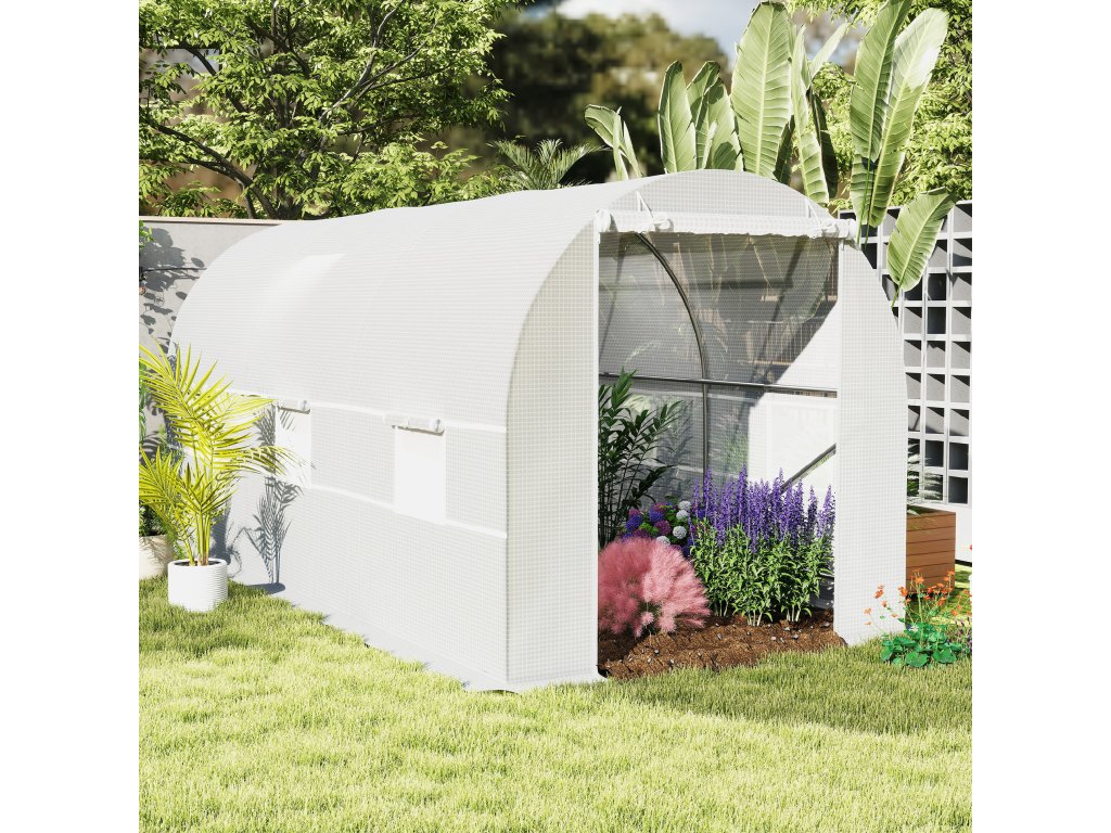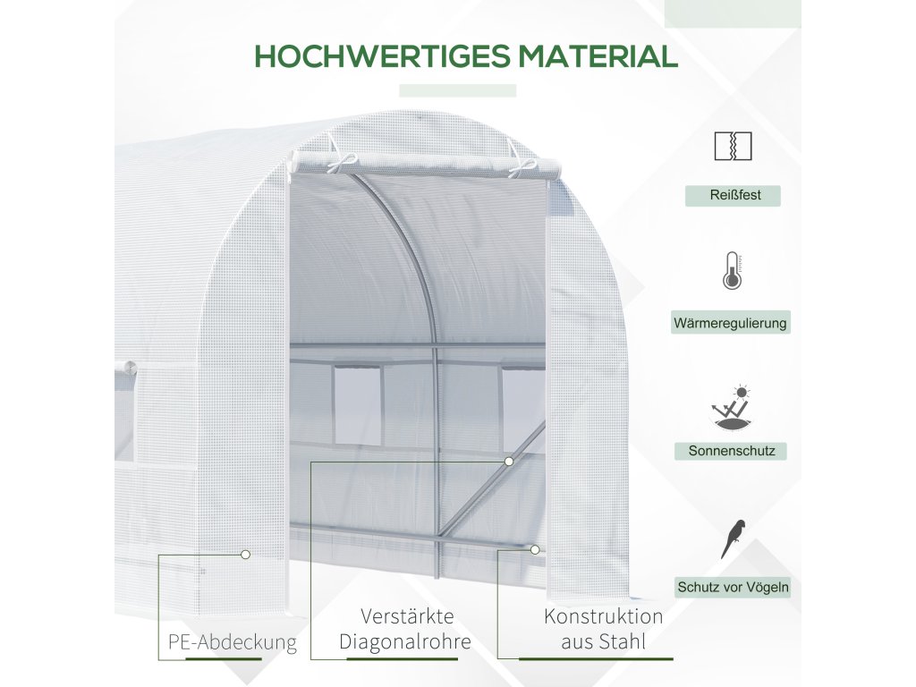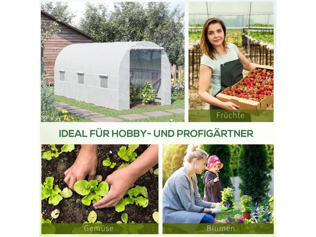 Fóliový skleník Outsunny Walk-in skleník s kovovým rámem 4,45 x 2 x 2 m Bílá barva